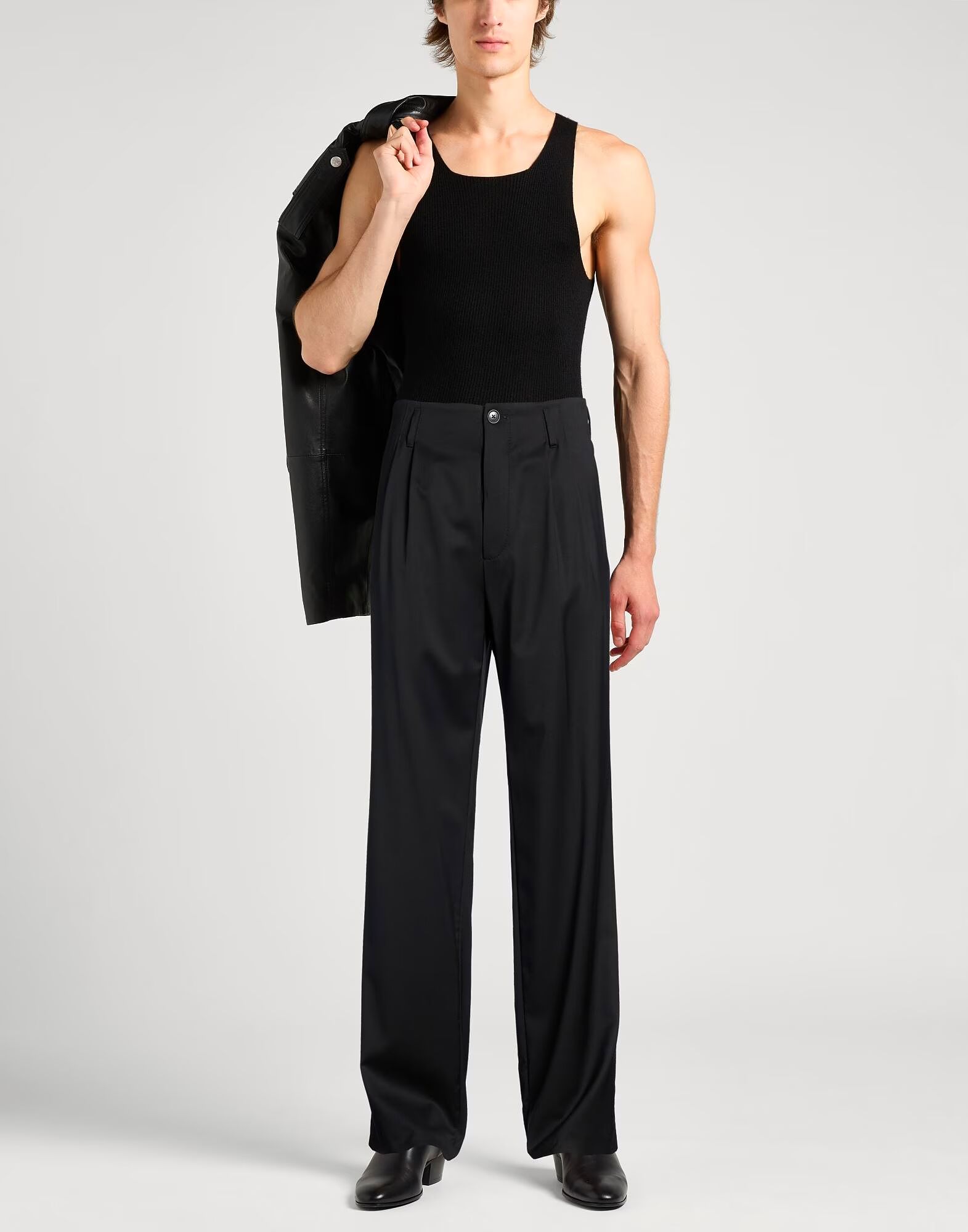 Брюки классического кроя, шерсть, однотонные, без аппликаций, высокая талия, шлевки для ремня, прямой крой, стандартная посадка, застежка на пуговицы, прорезные карманы, карман на поясе, химчистка, не отбеливать, не сушить в сушильной машине Создайте идеальный образ с этим дизайнерским комплектом, подходящим для деловых встреч или особых случаев