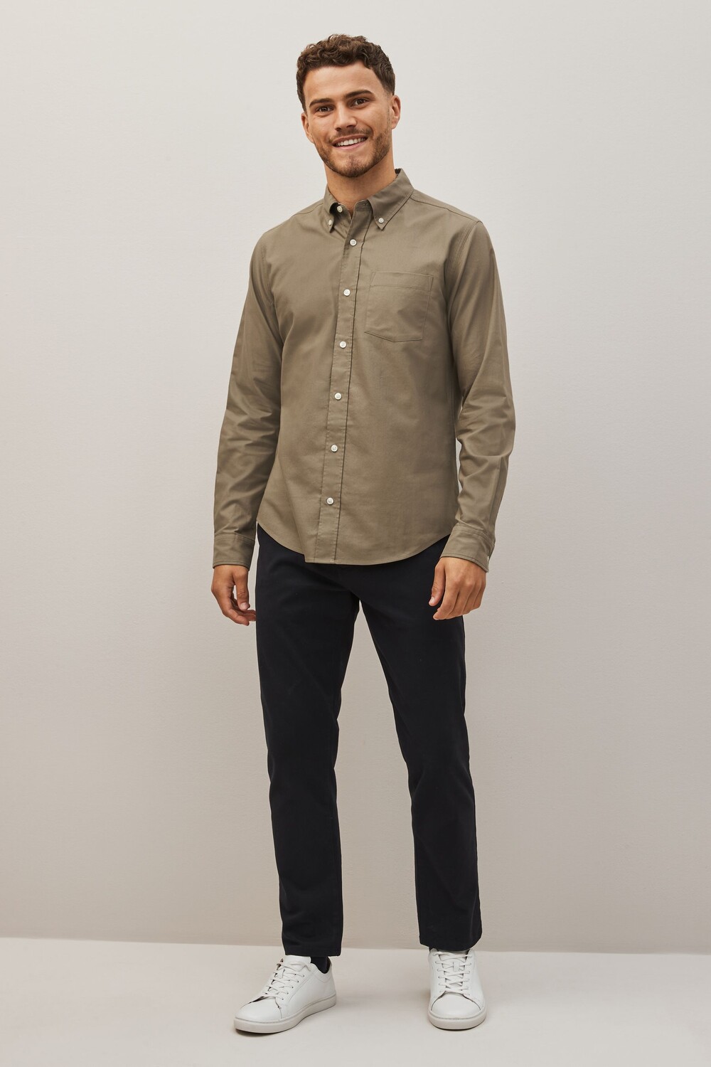 Оксфордская рубашка с длинными рукавами Next, серый