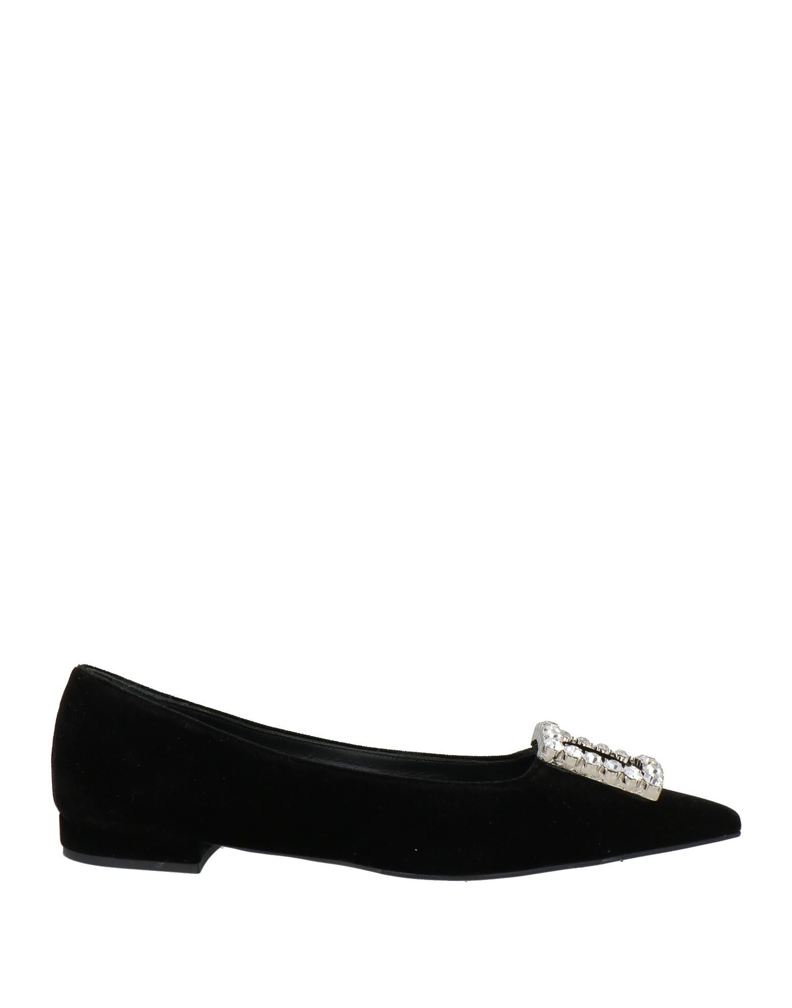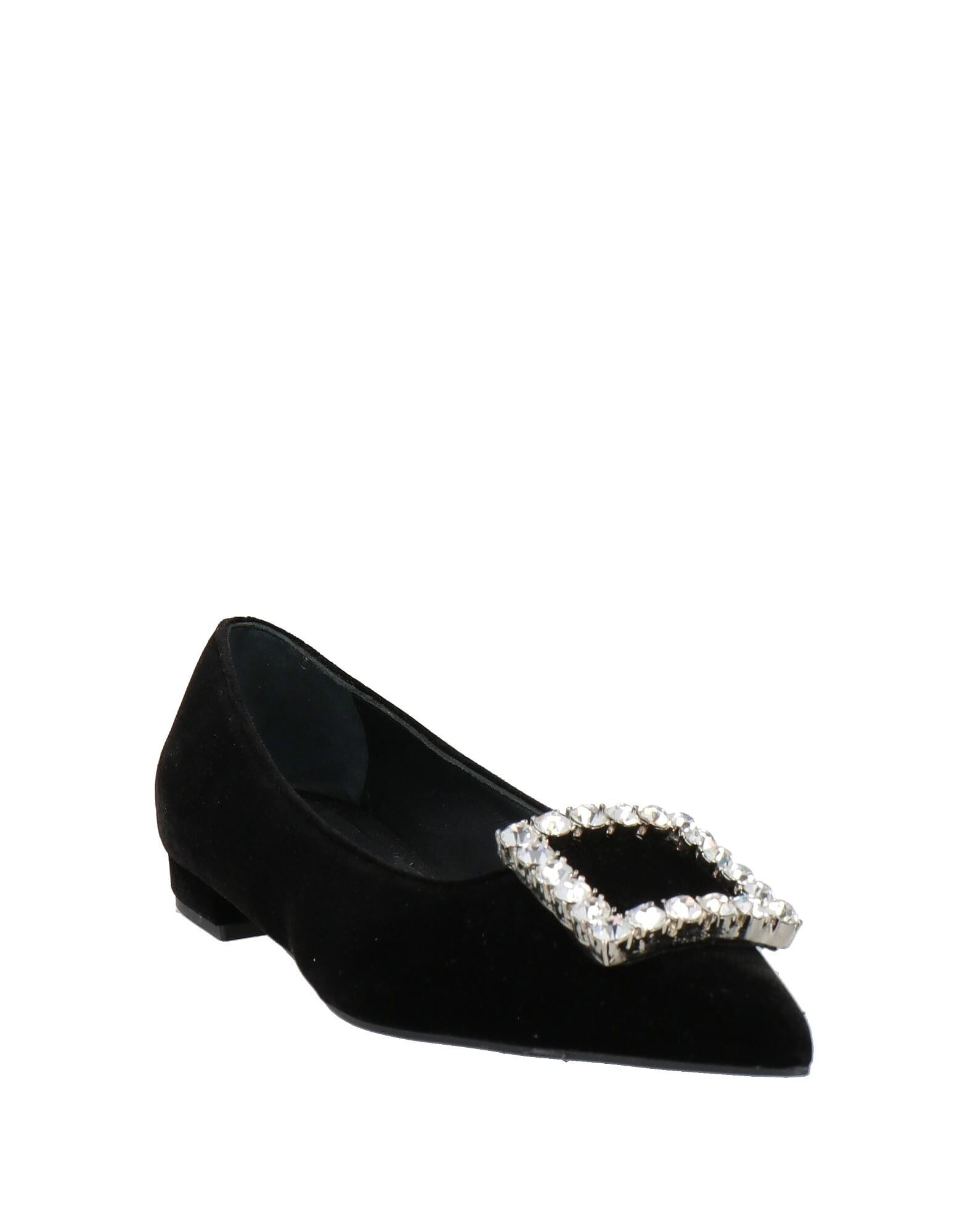 Балетки, бархат, однотонные, с аппликациями, кристаллами, кожаная подкладка, заостренный носок, плоская подошва, кожаная/резиновая подошва, содержат нетекстильные части животного происхождения, большой размер