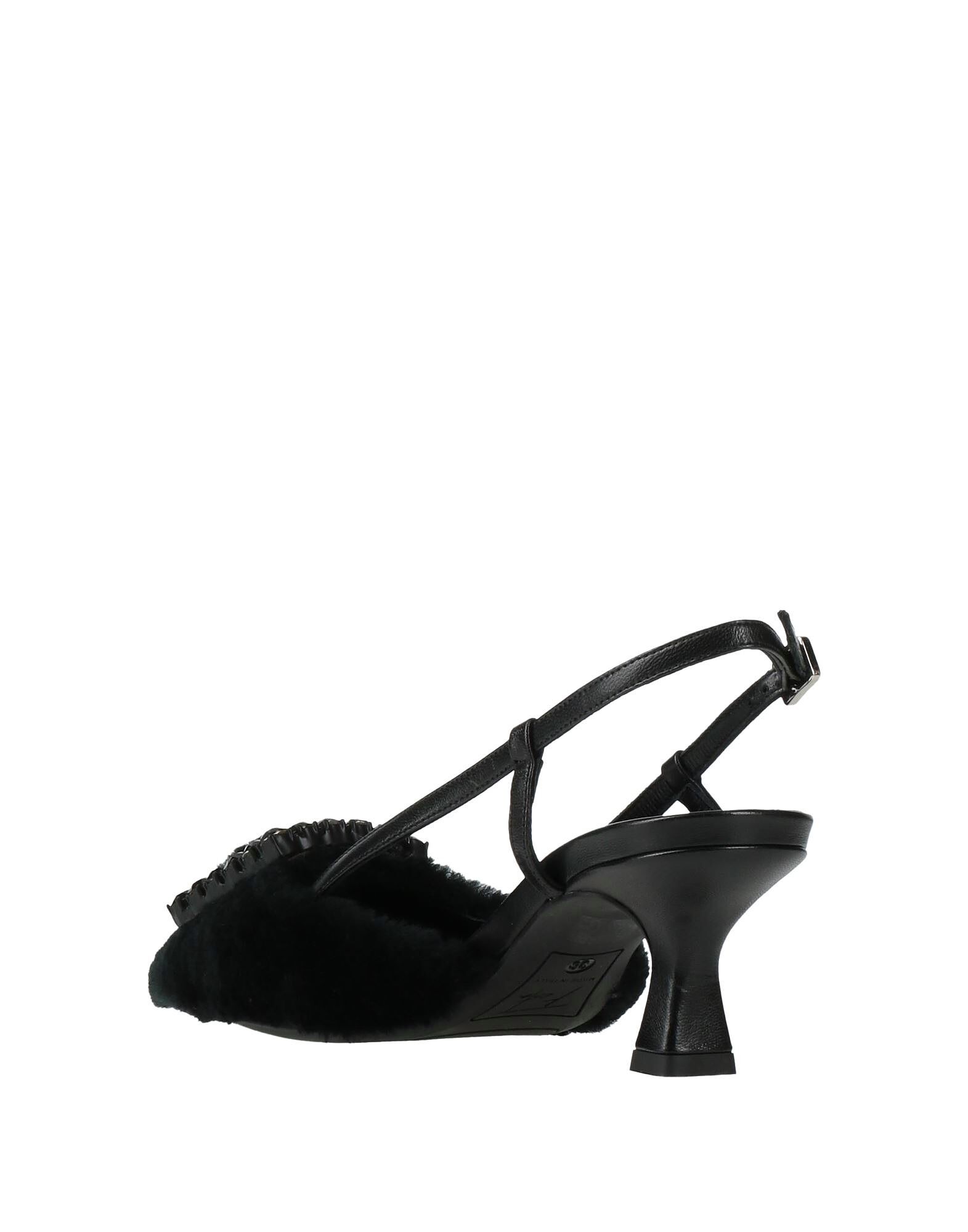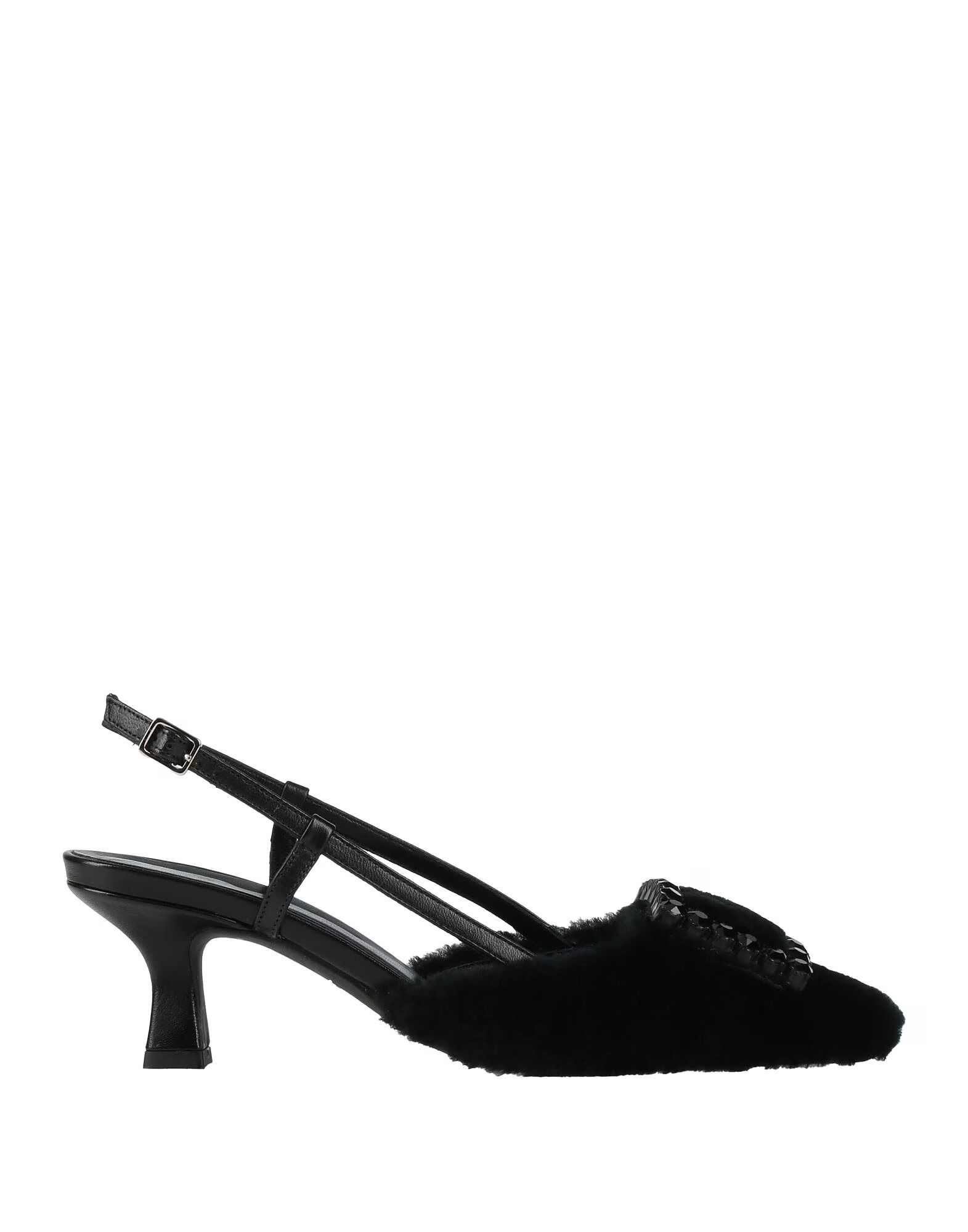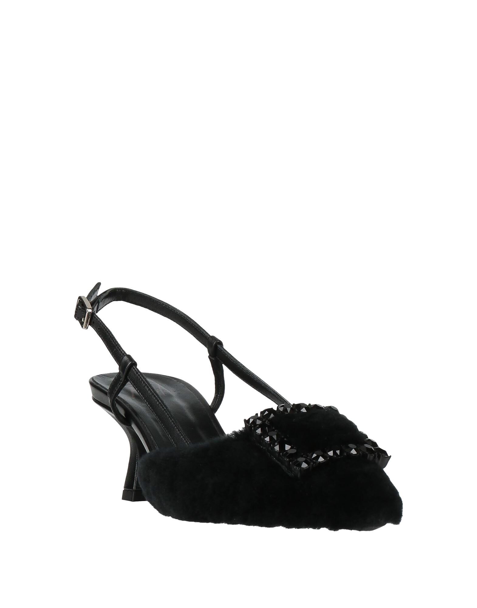 Туфли-лодочки с открытой пяткой, овчина, однотонные с аппликациями, кристаллами, кожаной подкладкой, заостренным носком, каблуком-шпилькой, обтянутым каблуком, резиновой подошвой, содержат нетекстильные части животного происхождения, большой размер