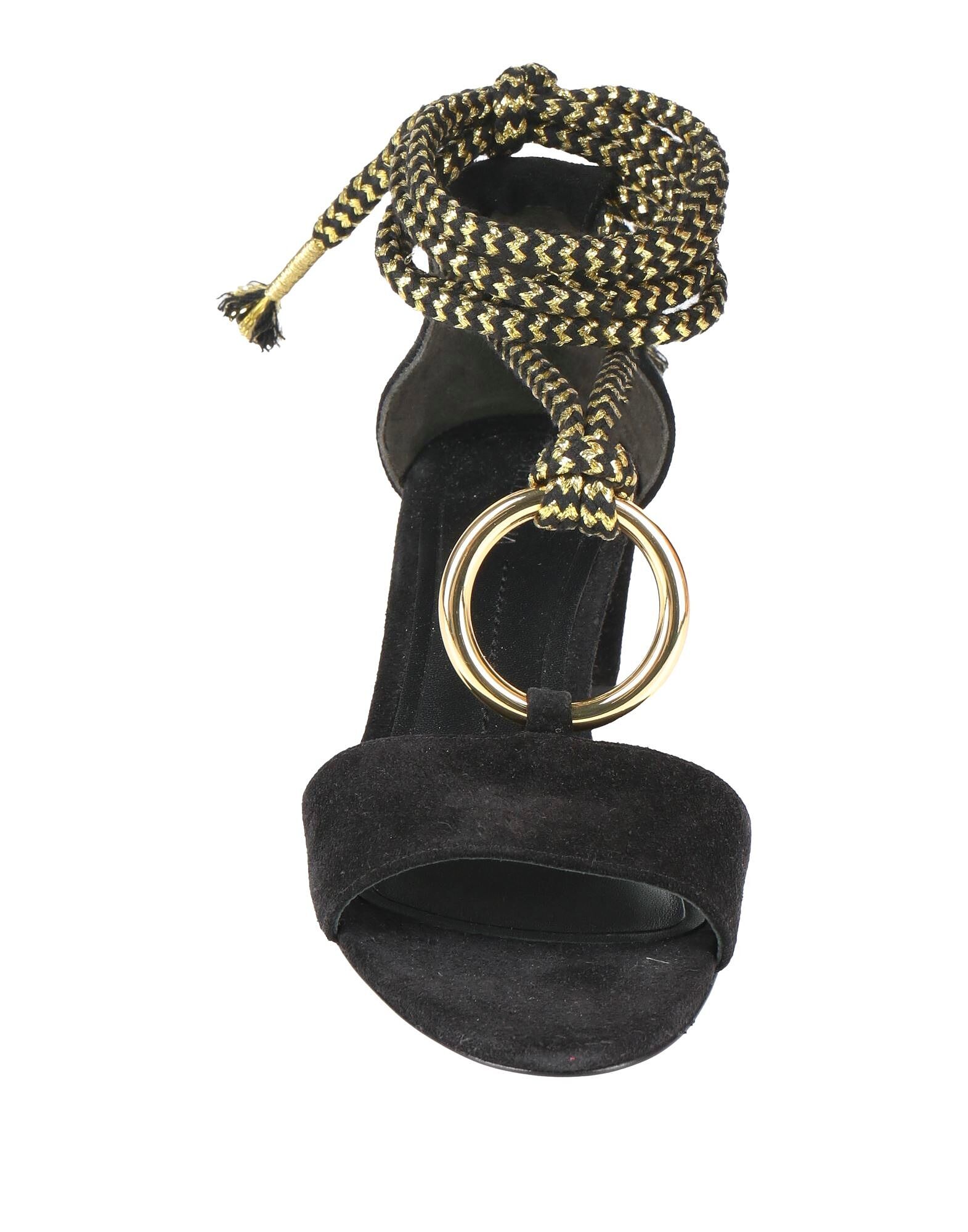 Сандалии, замшевые, металлизированные, однотонные с аппликациями, украшенные, кожаная подкладка, завязки на щиколотке, круглый носок, низкий каблук, обтянутый каблук, кожаная подошва, содержат нетекстильные части животного происхождения