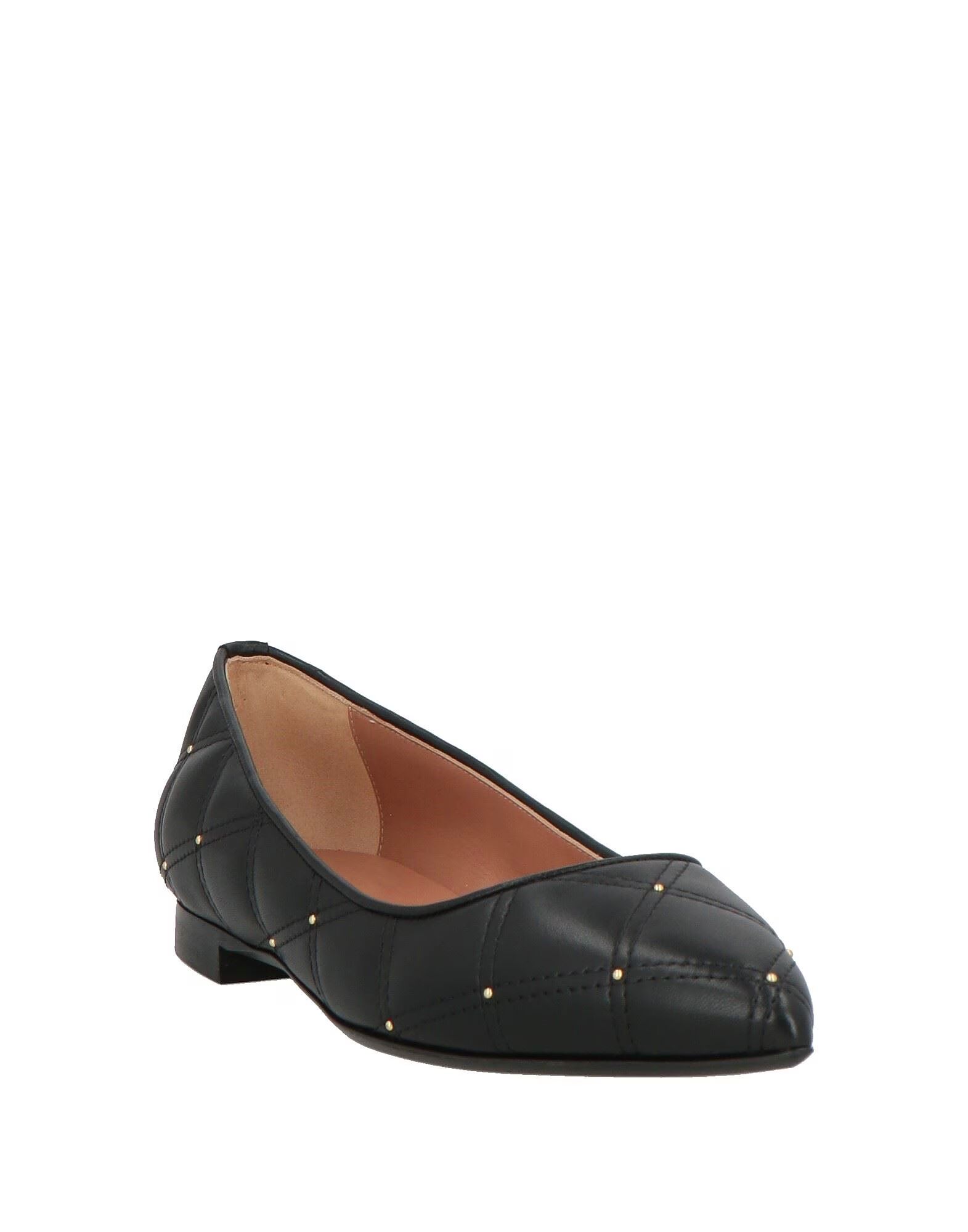 Балетки, кожаные, стеганые, однотонные, с аппликациями, заклепками, кожаной подкладкой, заостренным носком, плоская подошва, резиновая подошва, содержат нетекстильные части животного происхождения