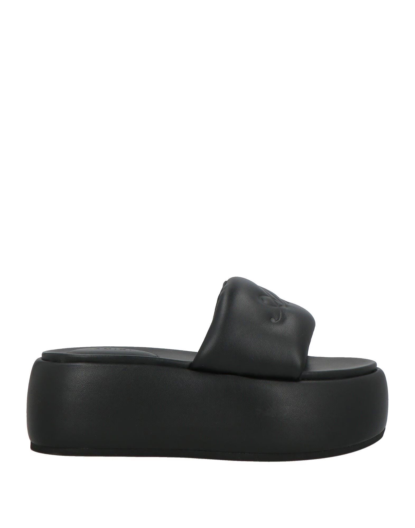 Сандалии-шлепанцы, кожа, однотонные, с логотипом бренда, кожаная подкладка, круглый носок, платформа, резиновая подошва, содержат нетекстильные части животного происхождения