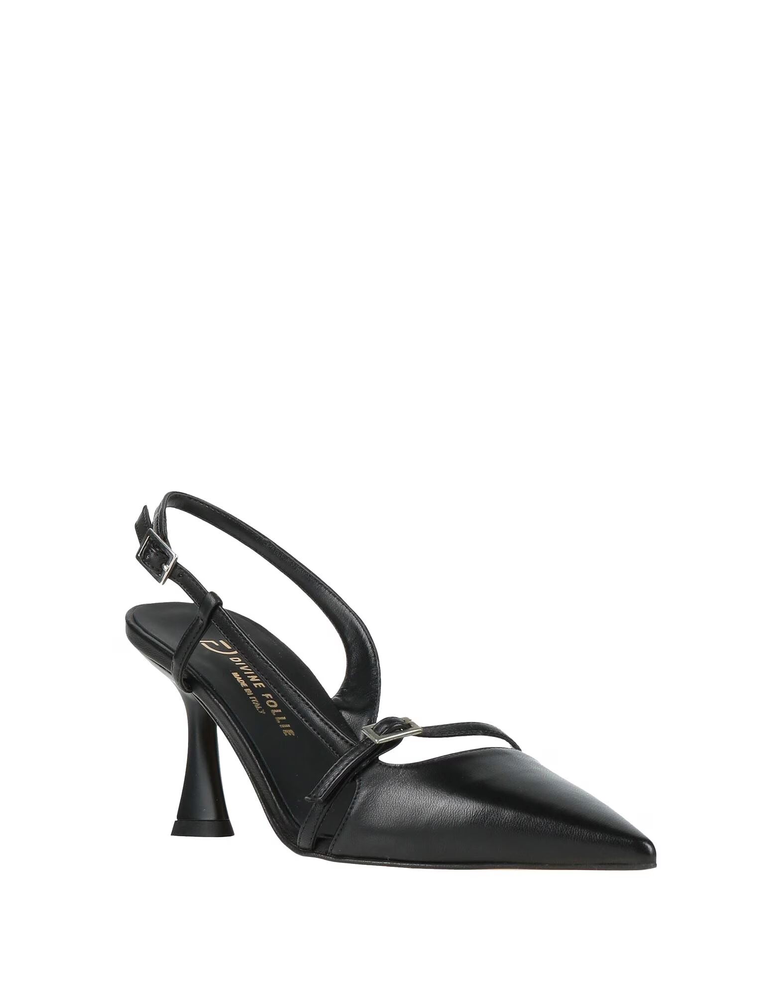 Туфли-лодочки с открытой пяткой, кожаные, однотонные, без аппликаций, кожаная подкладка, ремешок на щиколотке с пряжкой, заостренный носок, геометрический каблук, резиновая подошва, содержат нетекстильные части животного происхождения