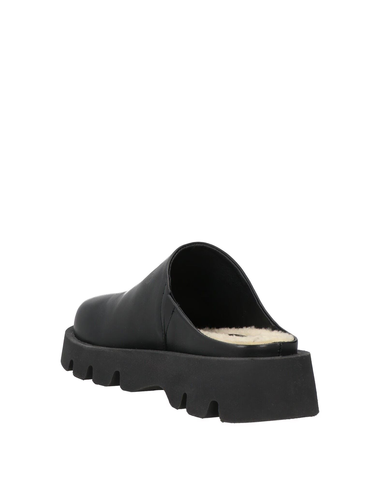Мюли, кожаные, однотонные, без аппликаций, с подкладкой из овчины, закругленный носок, плоская подошва, резиновая подошва, содержат нетекстильные части животного происхождения