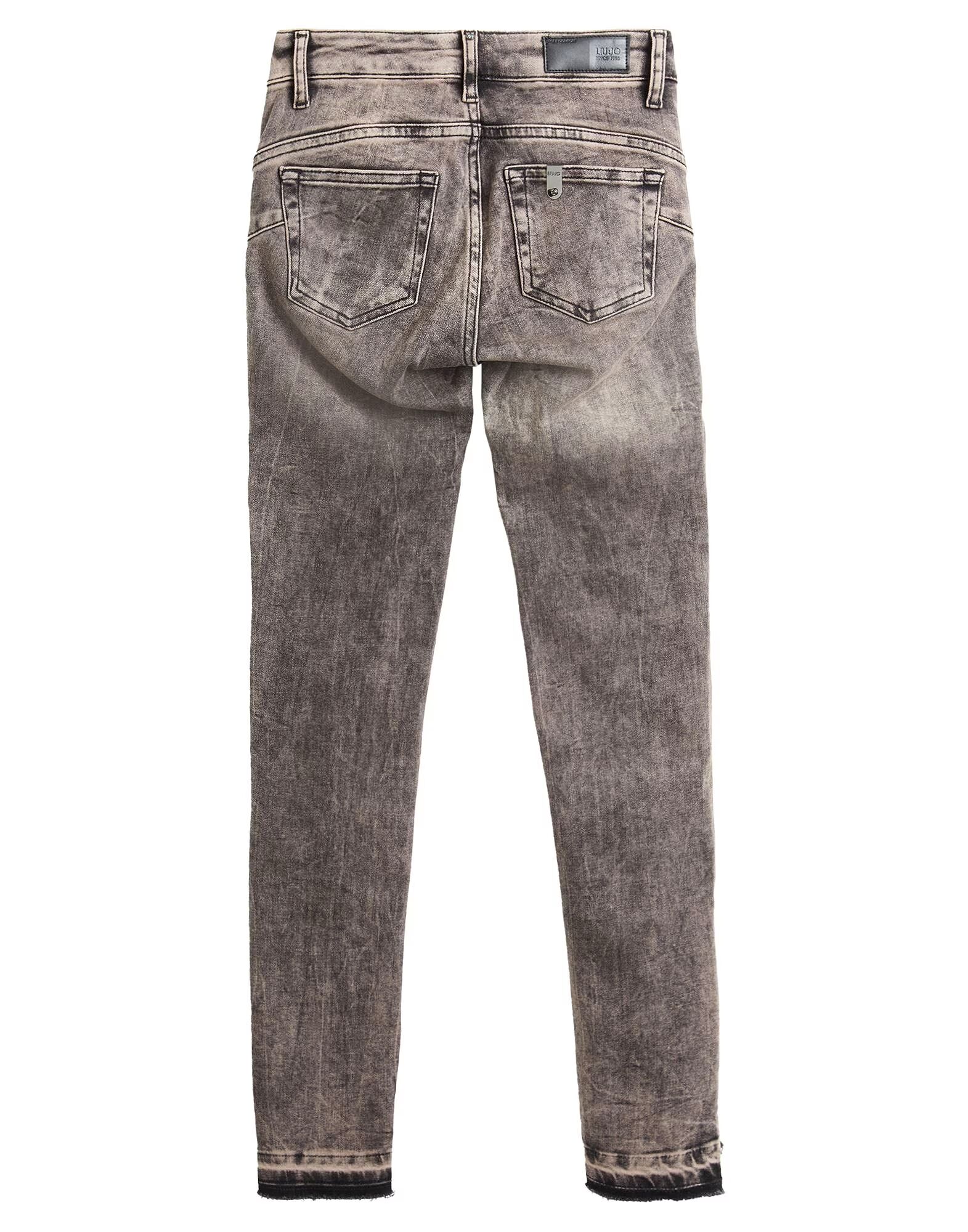 Джинсы прямого кроя, деним, однотонные, кожаная отделка, декор, цветная стирка, зауженный крой, необработанный край, множество карманов, эластичные, содержат нетекстильные части животного происхождения