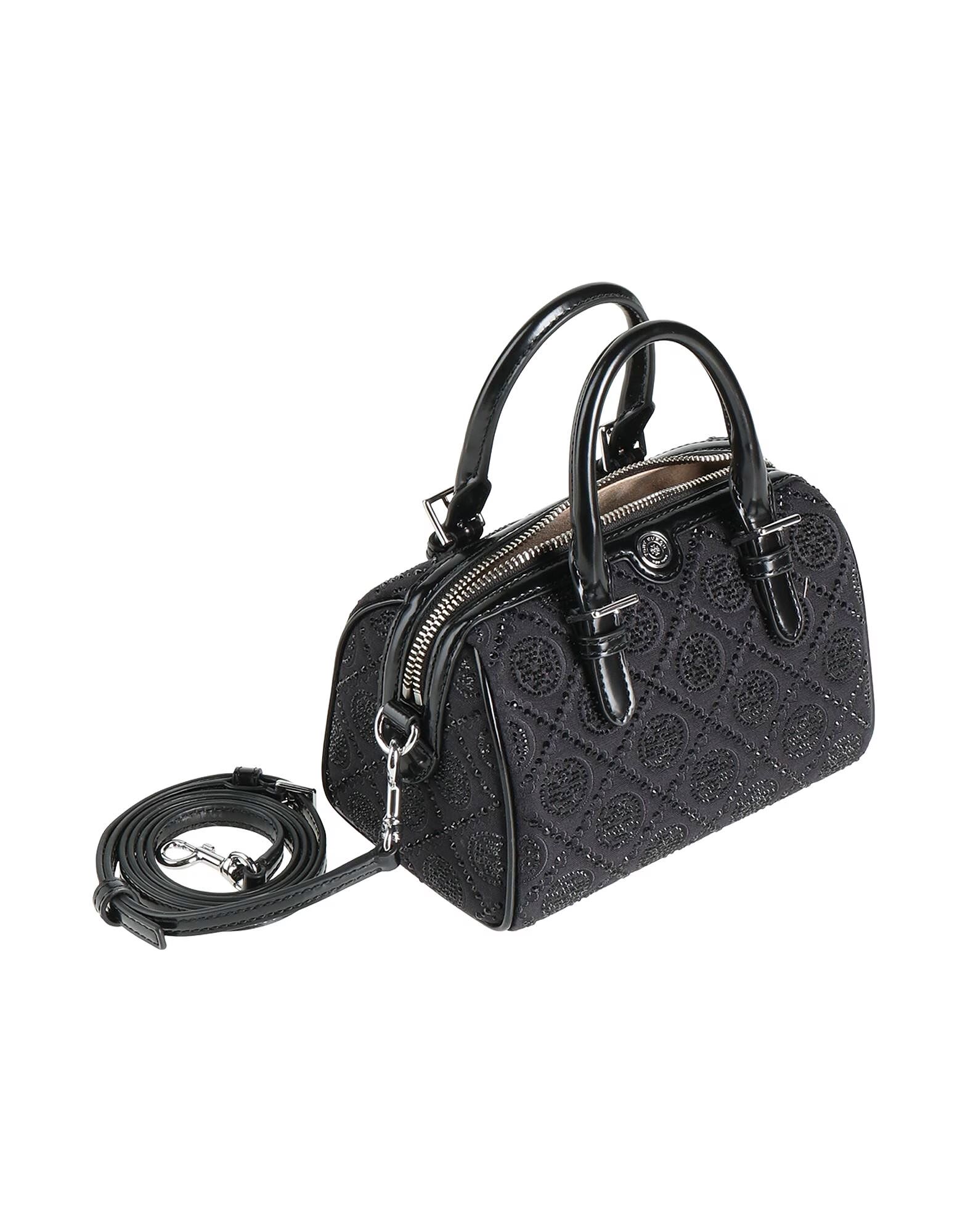 Сумка-боулер, плетеная, жаккардовая, однотонная, с аппликациями, кристаллами, отделкой из лакированной кожи, застежка-молния, полностью на подкладке, внутренний карман, двойная ручка, съемный плечевой ремень, ножки на основании, небольшой размер, содержит нетекстильные части животного происхождения