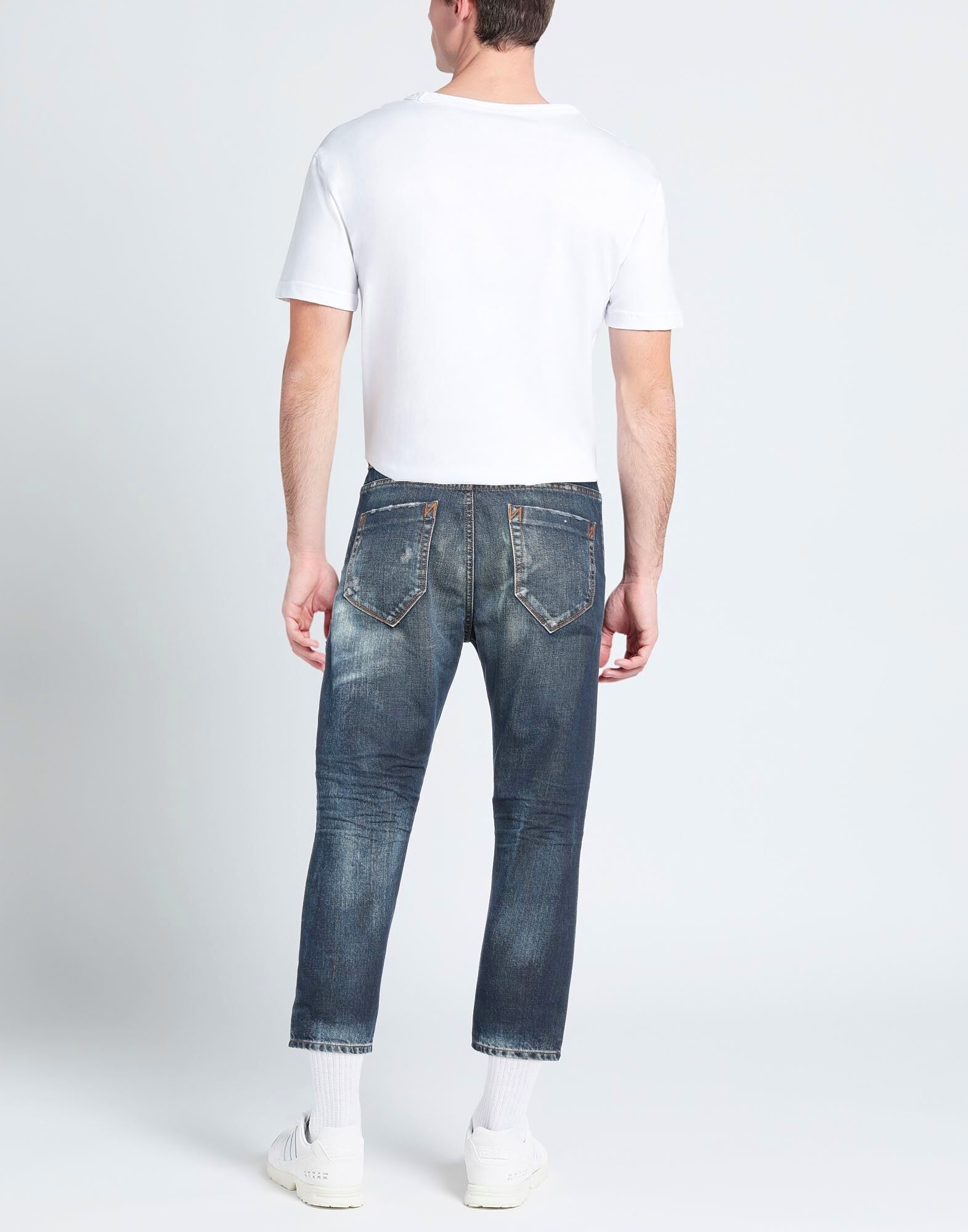 Джинсовая ткань, выцветшая, рваная, контрастные вставки, однотонная, темный оттенок, высокая талия, шлевки для ремня, зауженные штанины, узкие брюки, без подкладки, 1 пуговица, скрытые пуговицы, пять карманов, модель узких кроев