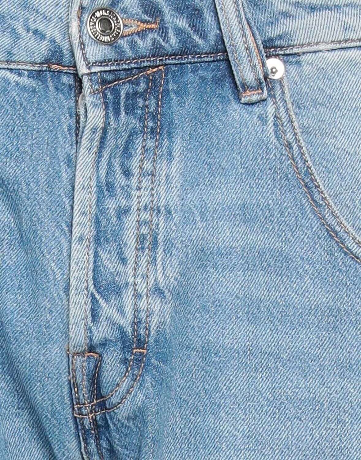 Джинсовая ткань, выцветшая, с эффектом потертости, логотип бренда, однотонная, светлый оттенок, средняя посадка, шлевки для ремня, зауженные штанины, стандартный крой, 1 пуговица, скрытые пуговицы, пять карманов, модель прямого кроя