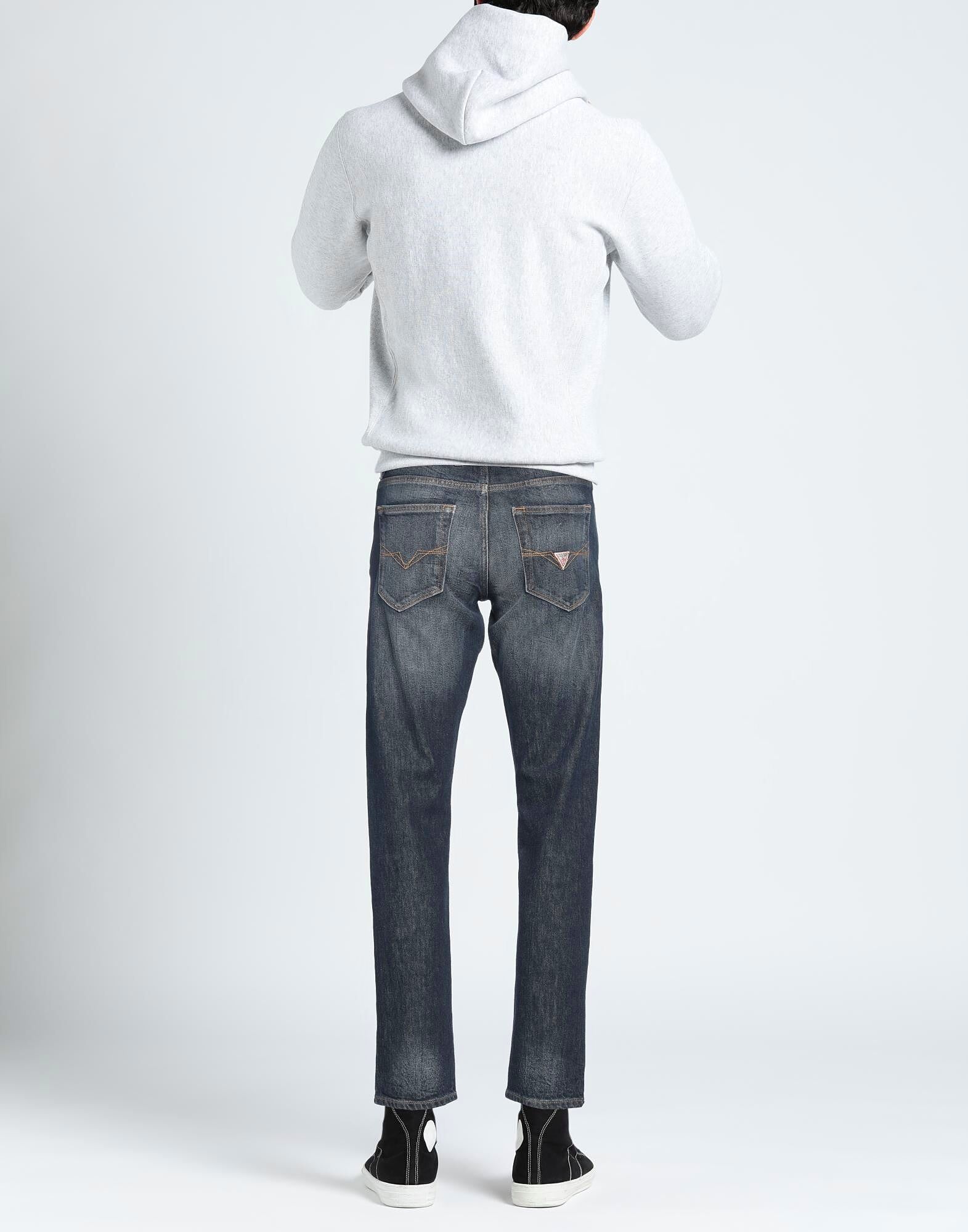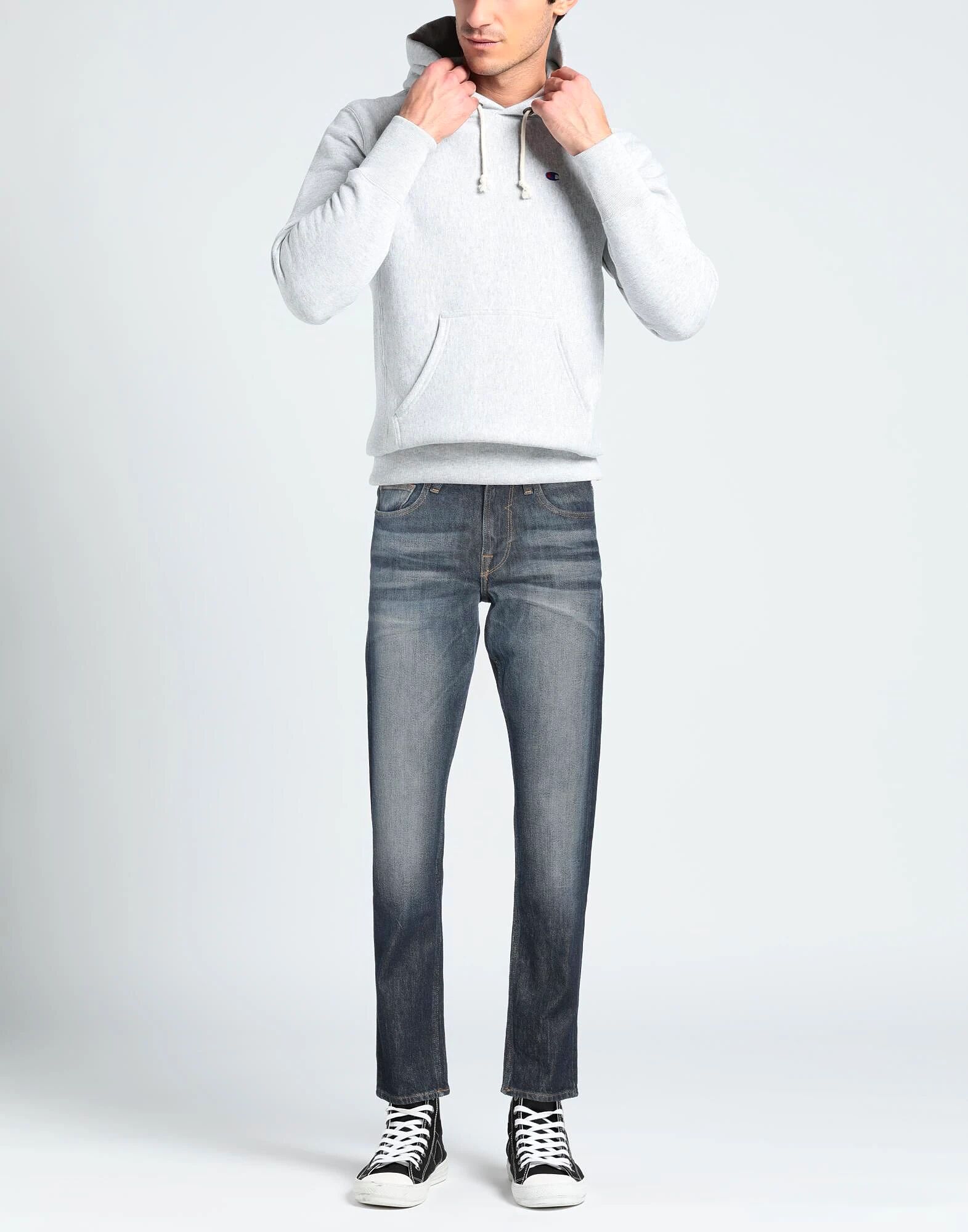 Зауженные джинсы, деним, выцветший, эластичная ткань, однотонный цвет, логотип бренда, темный оттенок, застежка-молния, 1 пуговица, пять карманов, машинная стирка, не отбеливать, не сушить в сушильной машине, содержит нетекстильные части животного происхождения