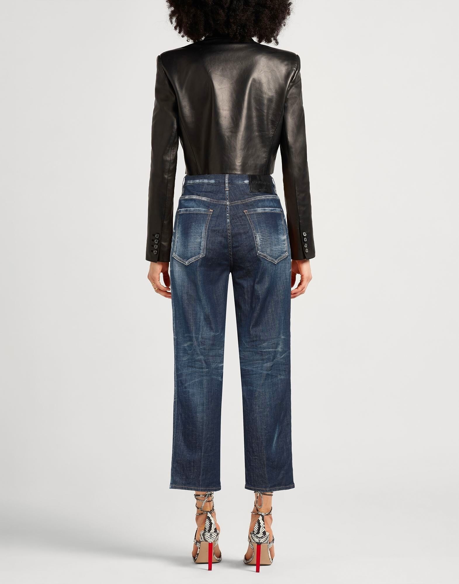 Джинсы прямого кроя, деним, выцветшие, с логотипом бренда, однотонные, темного цвета, с высокой талией, стандартного кроя, застежка на пуговицы, множество карманов, эластичные, ручная стирка или химчистка, не отбеливать, не сушить в сушильной машине, содержат нетекстильные части животного происхождения