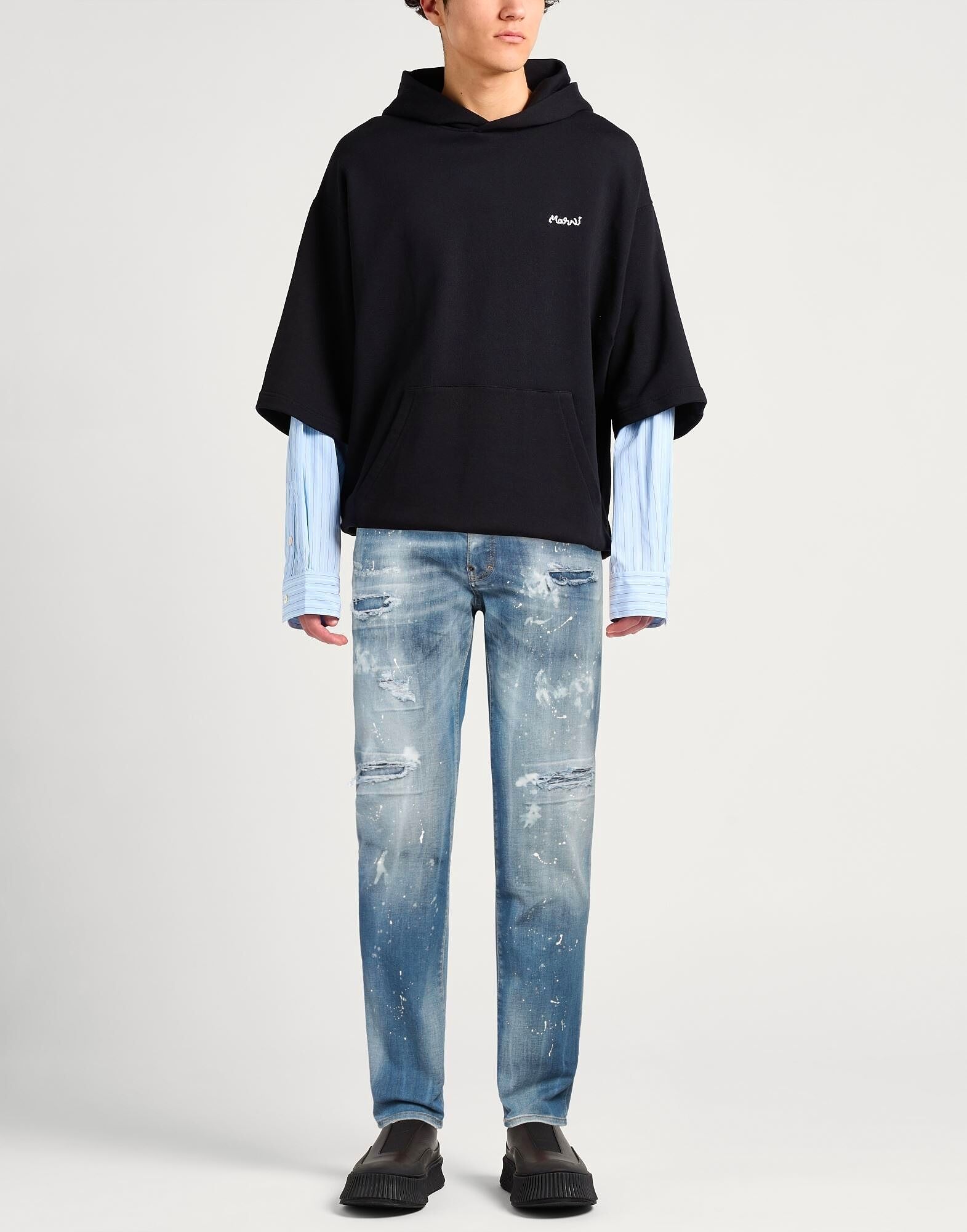 Узкие джинсы, деним, потертые, выцветшие, эластичная ткань, окрашивание в технике тай-дай, логотип бренда, светлый оттенок, средняя посадка, зауженный крой, застежка на пуговицы, пять карманов, машинная стирка или химчистка, не отбеливать, не сушить в сушильной машине