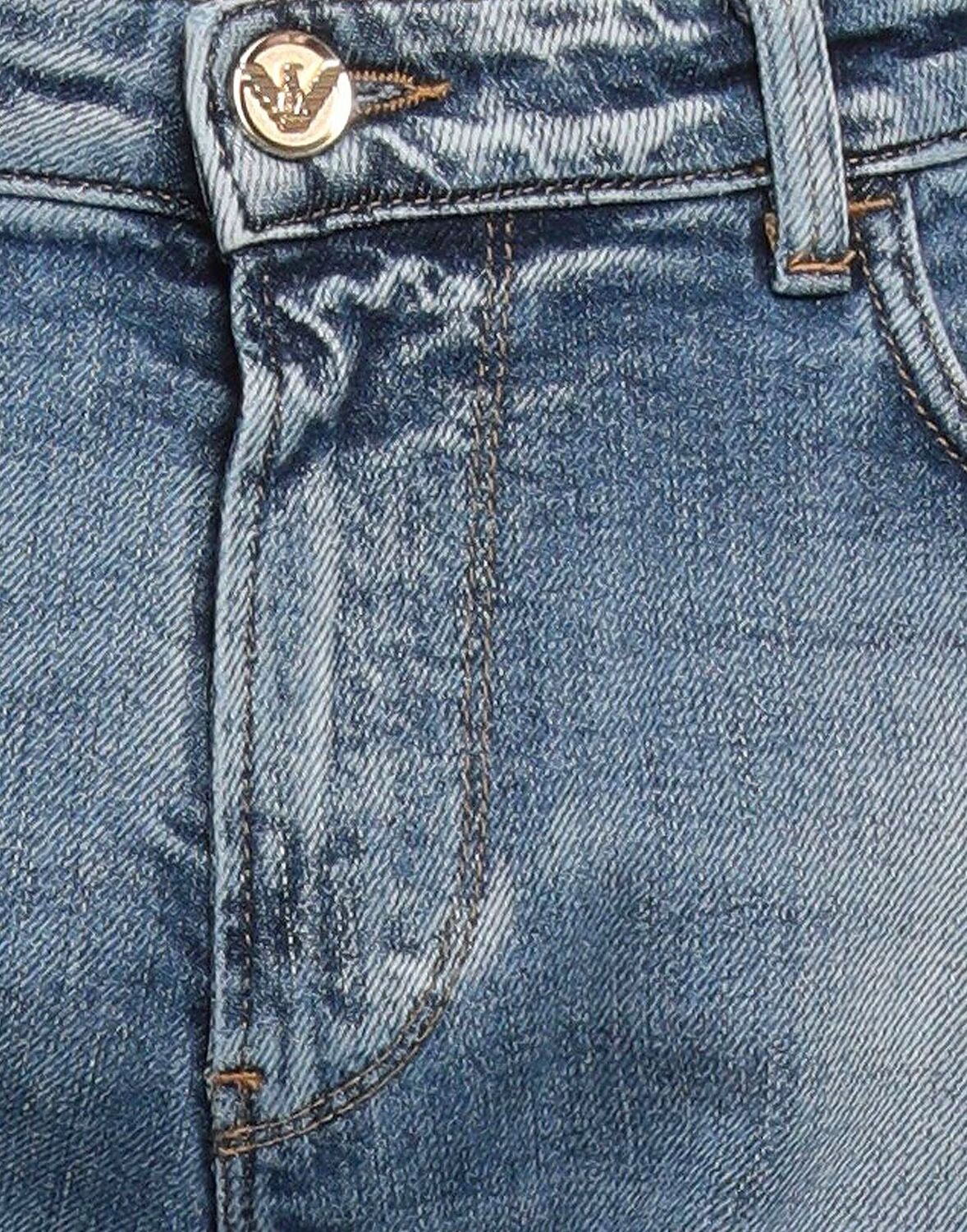 Джинсы прямого кроя, деним, рваные, выцветшие, однотонные, с логотипом бренда, средней степени потертости, средняя посадка, зауженный крой, застежка на молнию, 1 пуговица, пять карманов, машинная стирка, не отбеливать, не сушить в сушильной машине