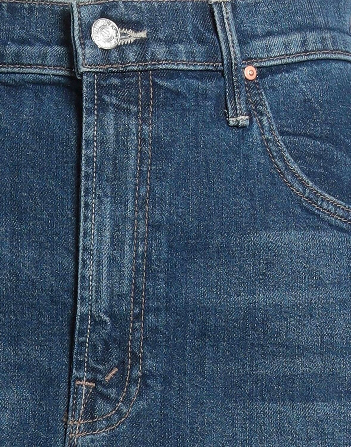 Расклешенная юбка, джинсовая ткань, выцветшая, однотонная, логотип бренда, темный цвет, петли для ремня, без подкладки, 1 пуговица, застежка-молния, несколько карманов, эластичная ткань, машинная стирка, не отбеливать, не сушить в сушильной машине