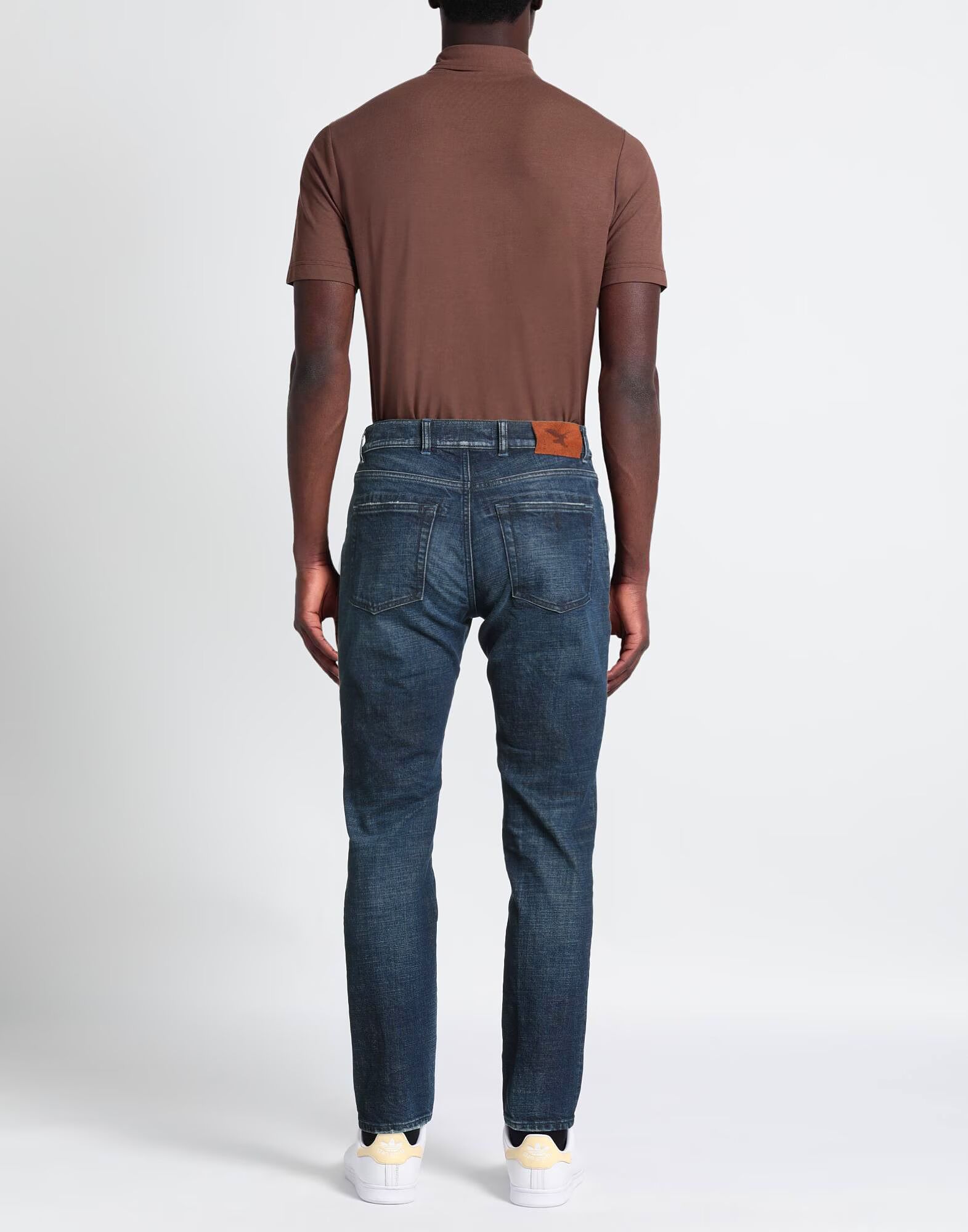 Джинсы прямого кроя, деним, выцветшие, однотонные, с логотипом бренда, темный оттенок, средняя посадка, стандартный крой, застежка-молния, 1 пуговица, пять карманов, машинная стирка, не отбеливать, не сушить в сушильной машине