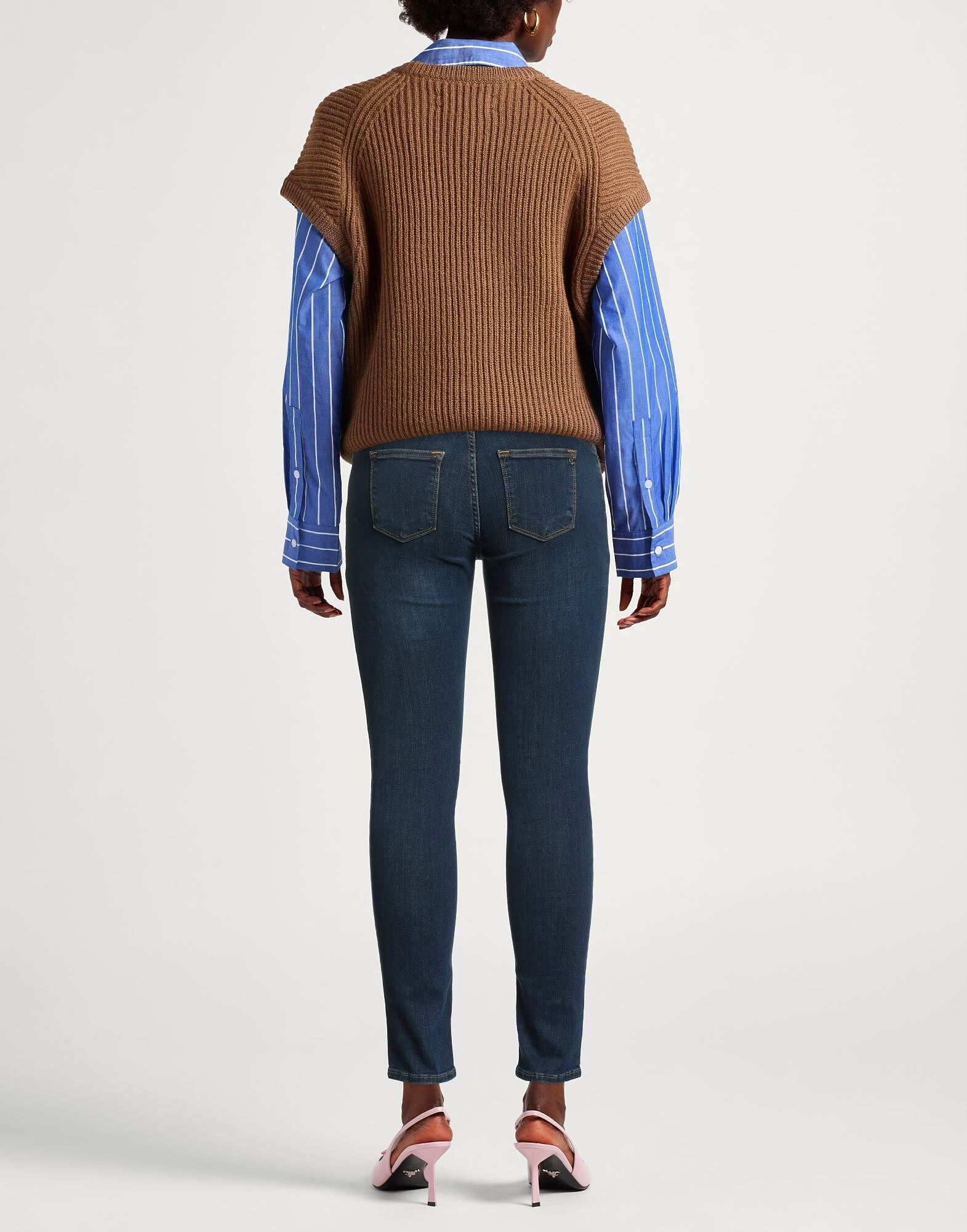 Узкие джинсы, деним, выцветший, эластичная ткань, однотонный цвет, логотип бренда, темный оттенок, средняя посадка, петли для ремня, облегающий крой, застежка-молния, 1 пуговица, пять карманов, машинная стирка или химчистка, не отбеливать, не сушить в сушильной машине