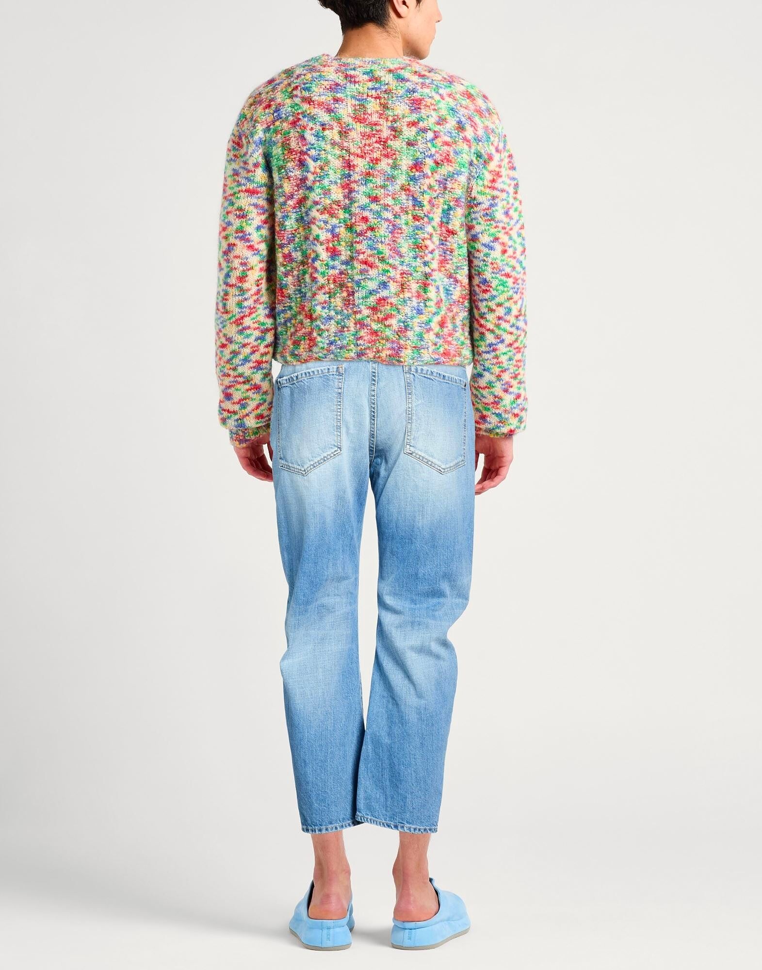 Джинсы прямого кроя, деним, выцветшие, однотонные, с логотипом бренда, светлого оттенка, с высокой талией, стандартного кроя, застежка на пуговицы, пять карманов, машинная стирка или химчистка, не отбеливать, не сушить в сушильной машине, содержат нетекстильные части животного происхождения, укороченные