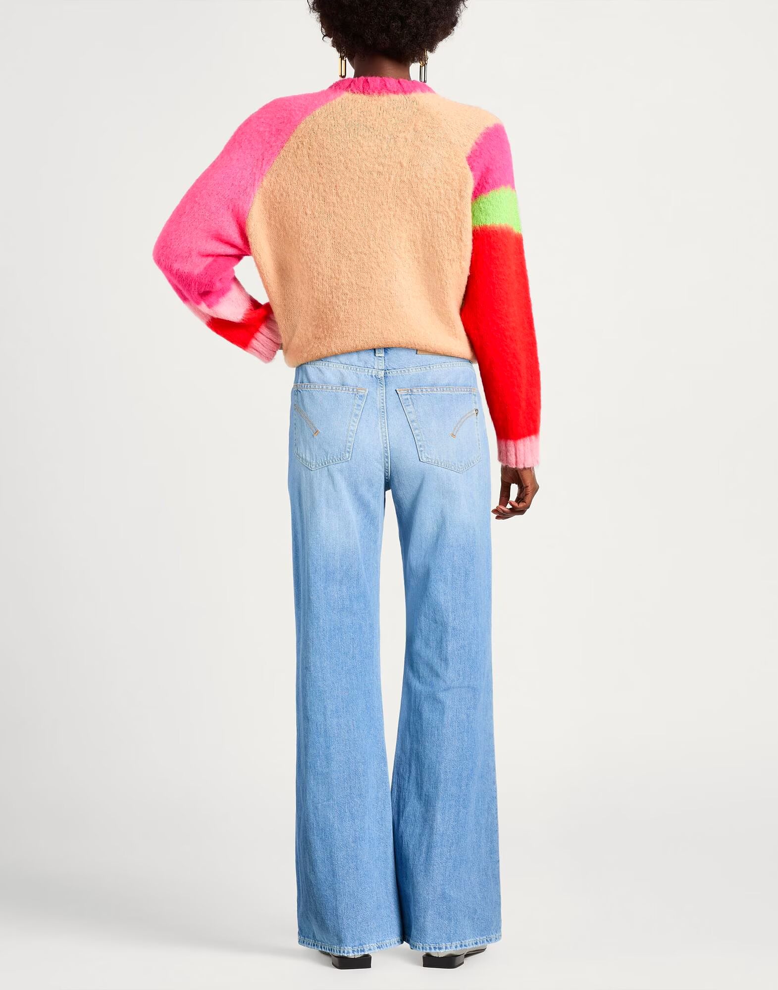 Расклешенные джинсы, модель: янтарный, широкие штанины, деним, потертости, выцветшие, однотонные, логотип бренда, светлый оттенок, высокая талия, петли для ремня, стандартный крой, застежка на молнию, застежка на пуговицы, пять карманов, ручная работа, машинная стирка, не отбеливать, не сушить в сушильной машине, содержит нетекстильные части животного происхождения