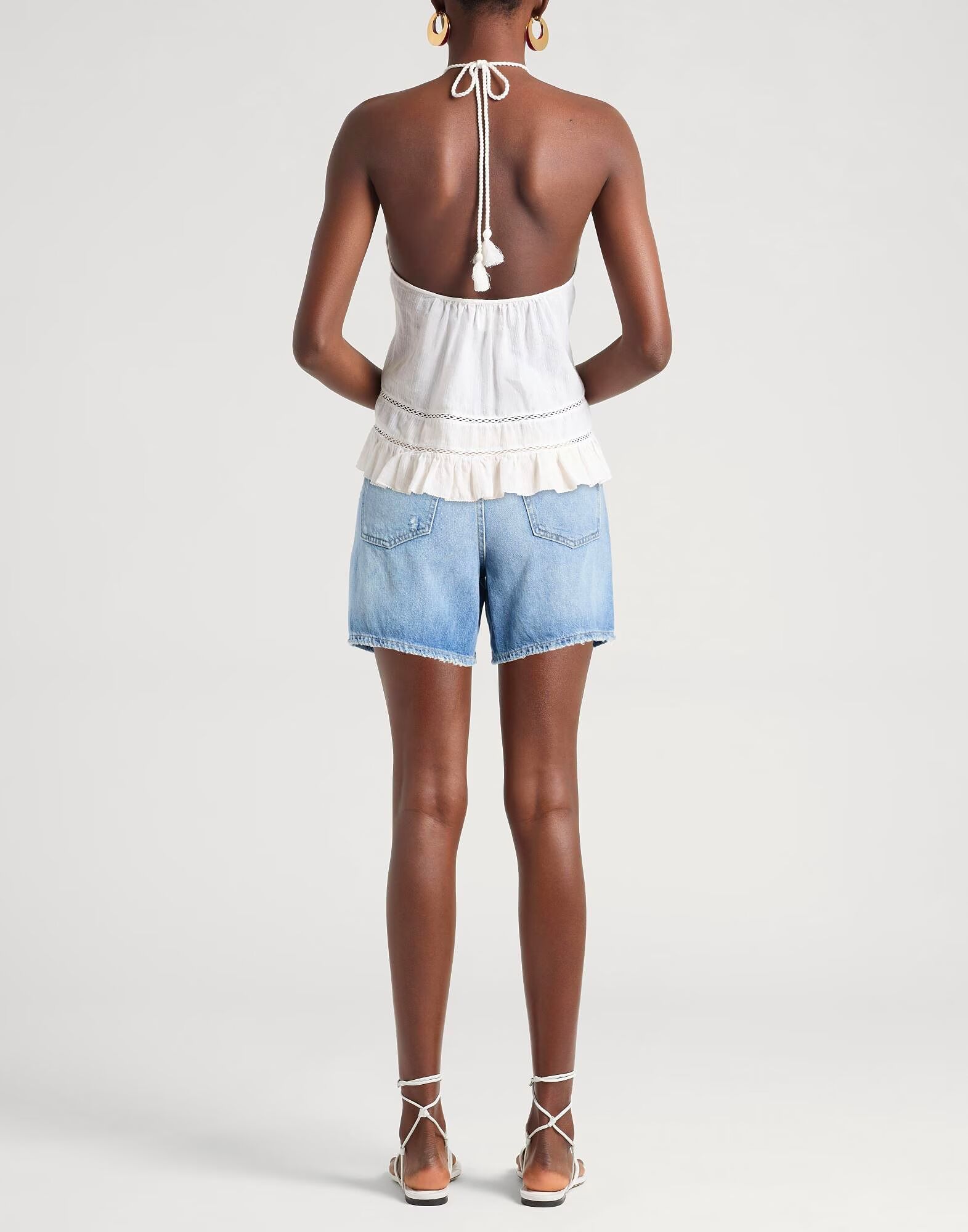 Шорты, джинсовая ткань, выцветшие, однотонные, логотип бренда, светлый оттенок, высокая талия, петли для ремня, застежка на молнию, застежка на пуговицы, пять карманов, машинная стирка или химчистка, не отбеливать, не сушить в сушильной машине Планируете поездку на выходные или отдых на пляже? Это тот непринужденный летний стиль, который вам нужен Этот бренд большемерит