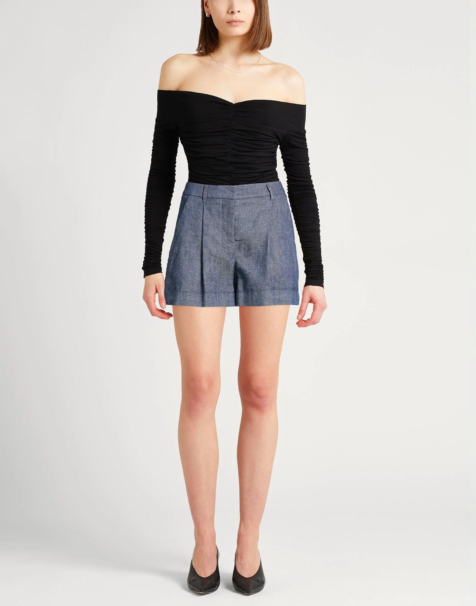 Шорты, джинсовая ткань, однотонные, вытачки, темный цвет, высокая талия, петли для ремня, стандартный крой, застежка на молнию, застежки на крючок, прорезные карманы, карманы на молнии, ручная стирка или химчистка, не отбеливать, не сушить в сушильной машине, содержит нетекстильные части животного происхождения Планируете поездку на выходные или отдых на пляже? Это тот непринужденный летний стиль, который вам нужен