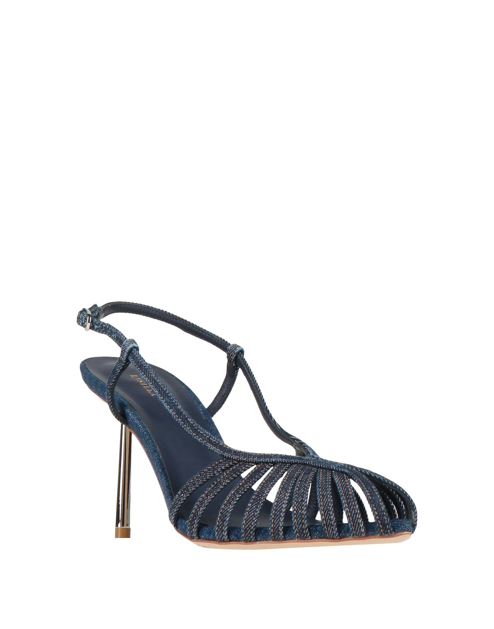 Сандалии с открытой пяткой, джинсовая ткань, однотонные, без аппликаций, застежка на пряжку, заостренный носок, геометрический каблук, кожаная/резиновая подошва, кожаная подкладка, содержат нетекстильные части животного происхождения
