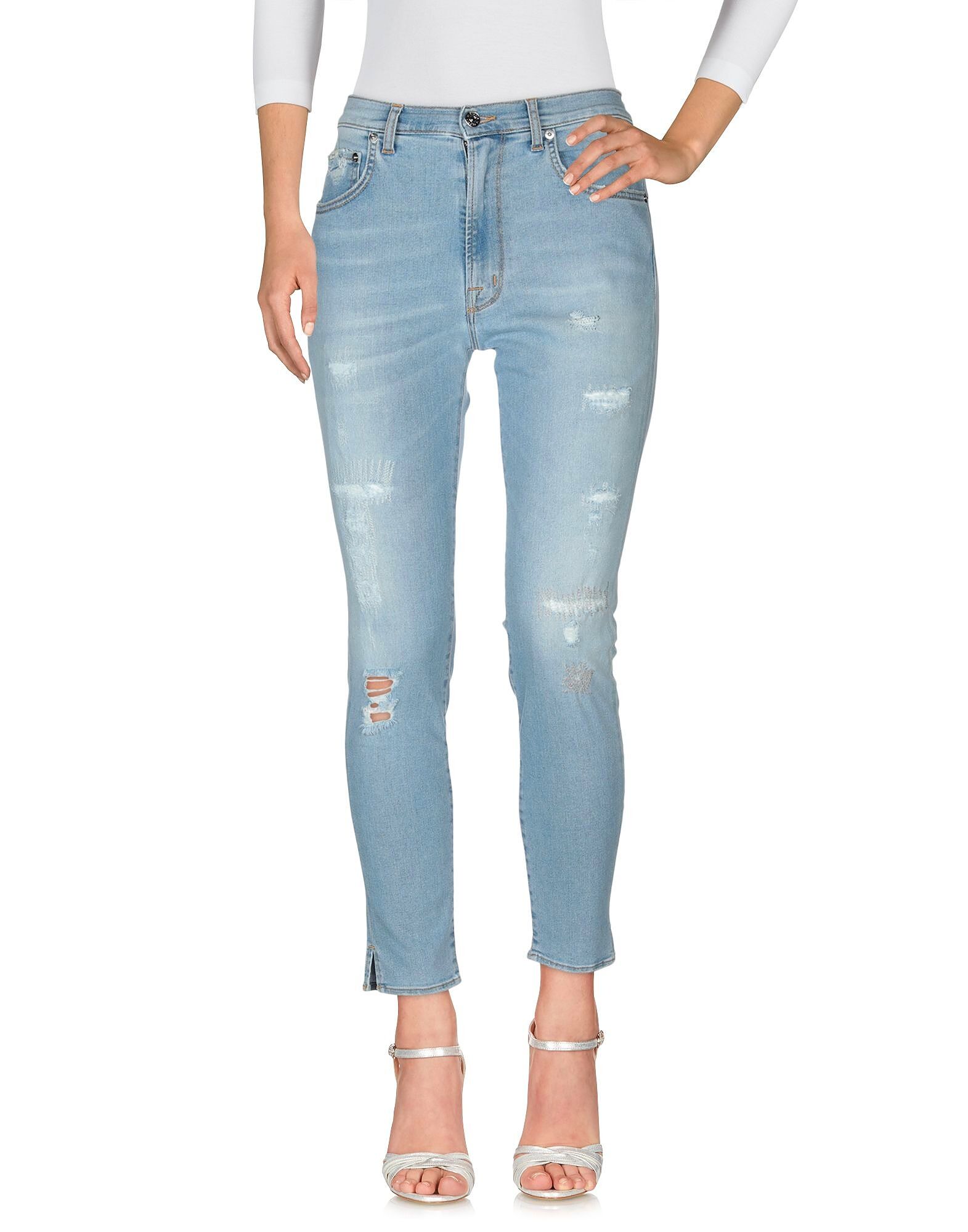 Джинсовая ткань, выцветшая, заклепки, логотип, однотонная, светлый оттенок, средняя посадка, застежка спереди, пуговица, молния, множество карманов, эффект потертости, эластичные, брюки прямого кроя