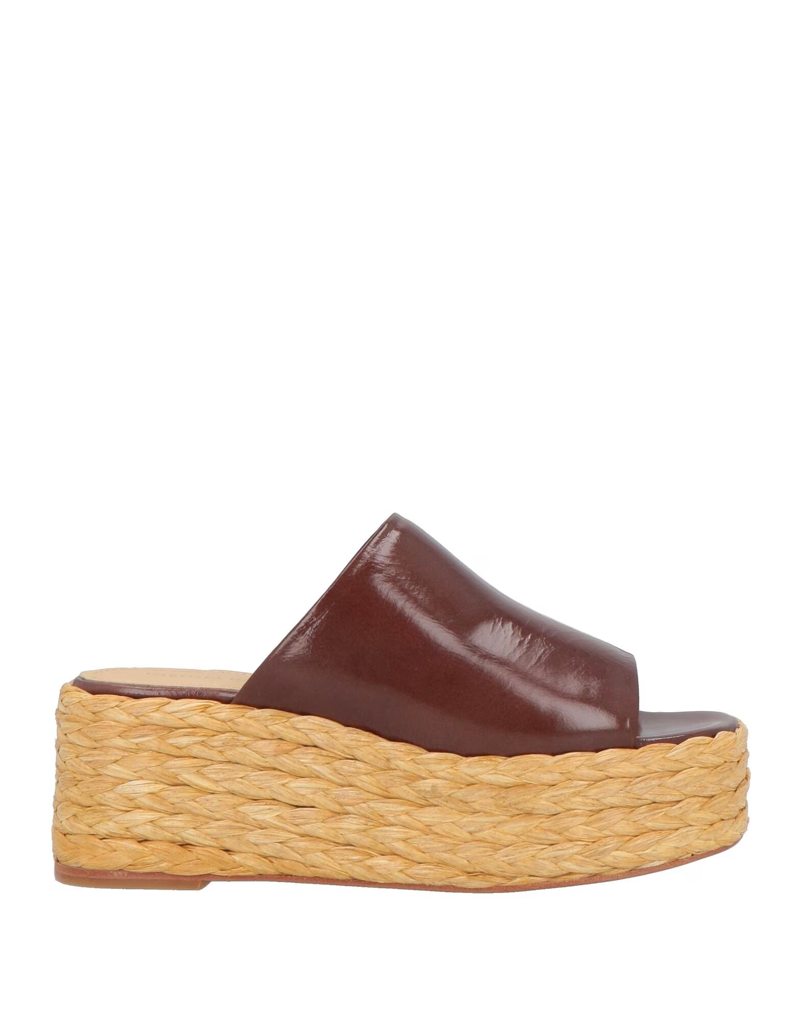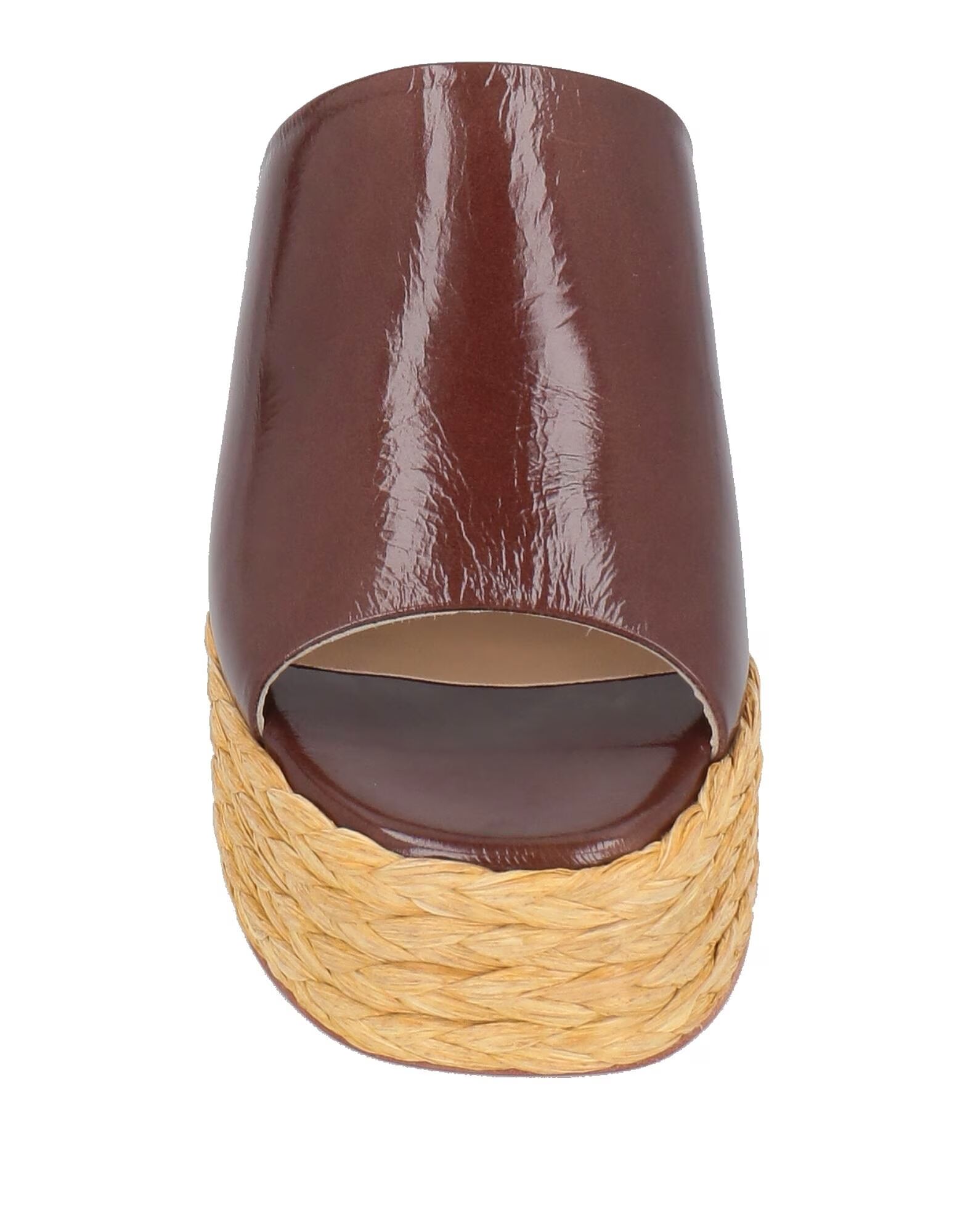 Сандалии-эспадрильи, глянцевая кожа, однотонные, без аппликаций, кожаная подкладка, круглый носок, танкетка, кожаная/резиновая подошва, содержат нетекстильные части животного происхождения