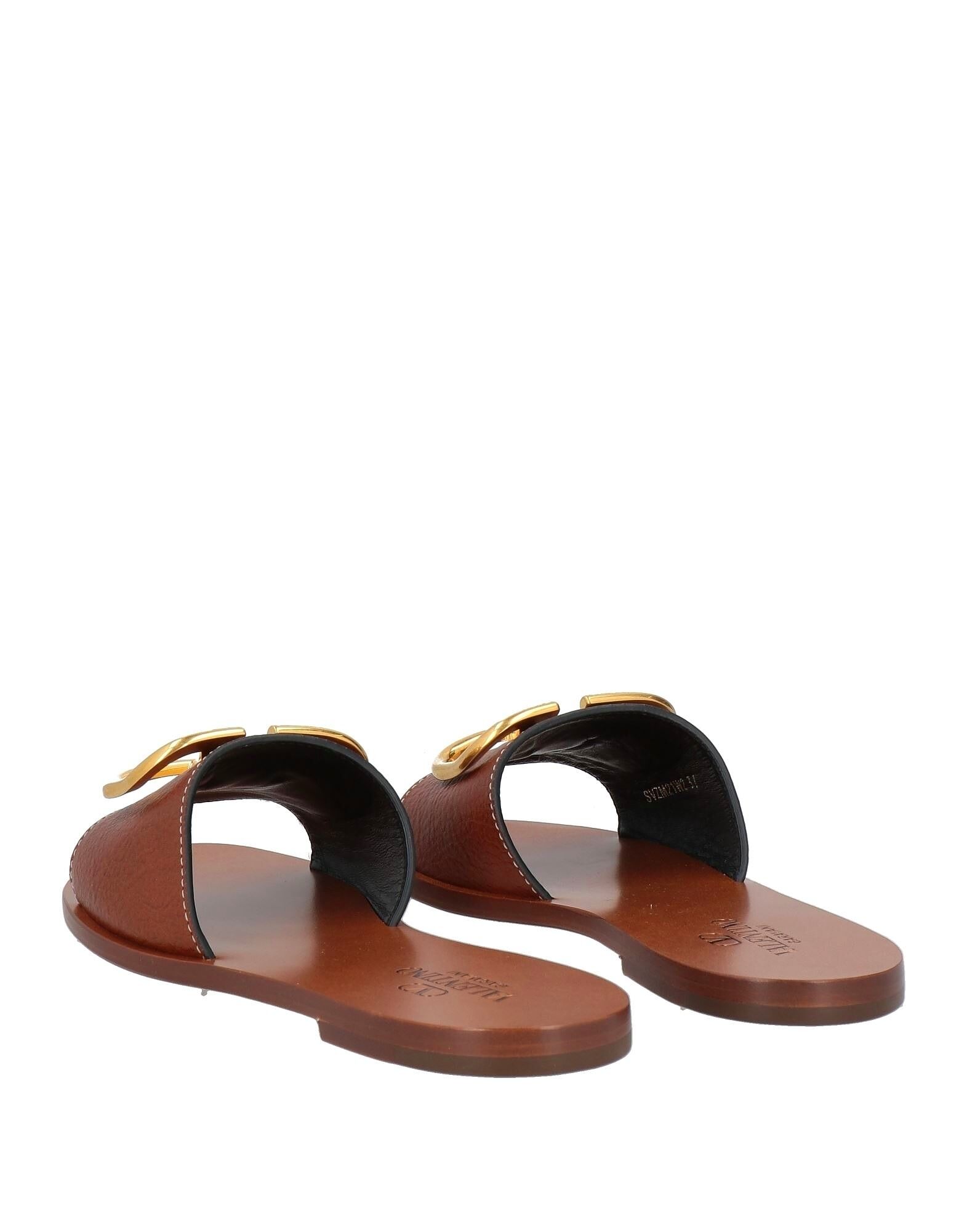Сандалии-шлепанцы, зернистая кожа, однотонные с аппликациями, логотип бренда, декоративная отделка, кожаная подкладка, круглый носок, плоская подошва, кожаная подошва, содержат нетекстильные части животного происхождения
