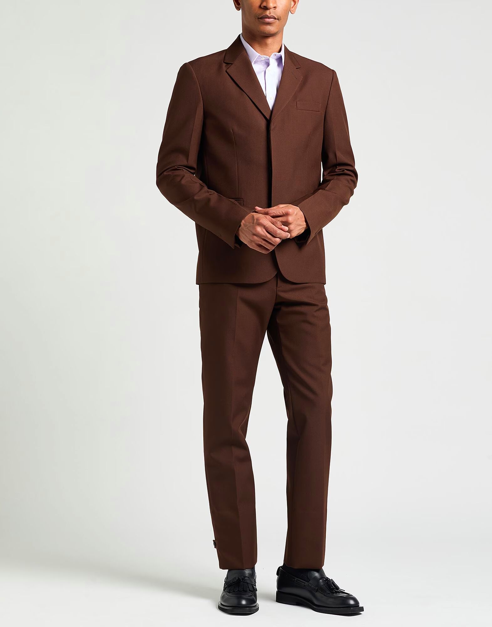 Классические брюки, тканые, однотонные, без аппликаций, средняя посадка, зауженные штанины, стандартный крой, застежка на молнию, карманы, химчистка, не отбеливать, не сушить в сушильной машине, эта марка большемерит