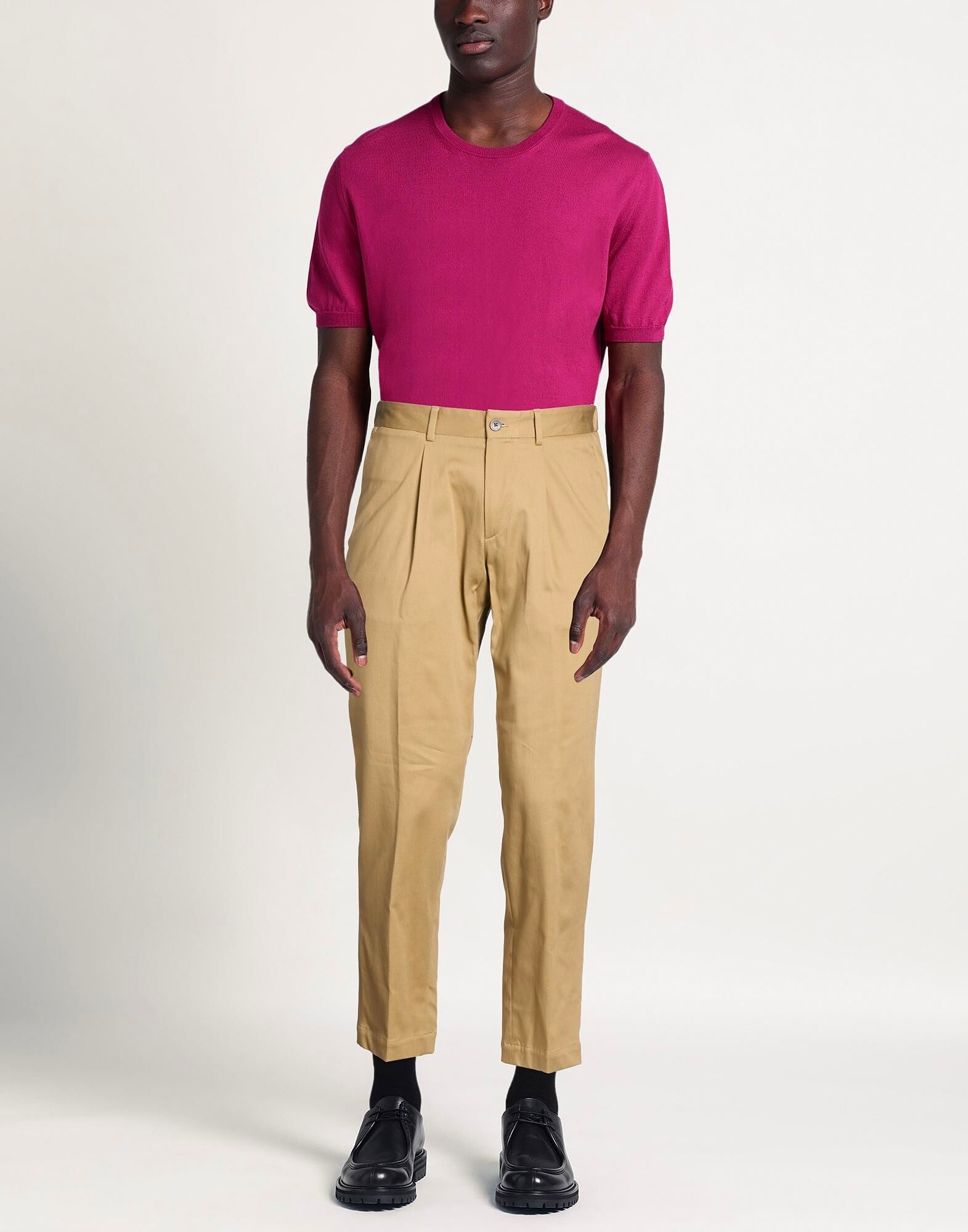 Брюки чинос, прохладная шерсть, эластичная ткань, однотонный цвет, вытачки, средняя посадка, шлевки для ремня, зауженные штанины, стандартный крой, застежка на пуговицы, прорезные карманы, накладные карманы, машинная стирка или химчистка, не отбеливать, не сушить в сушильной машине