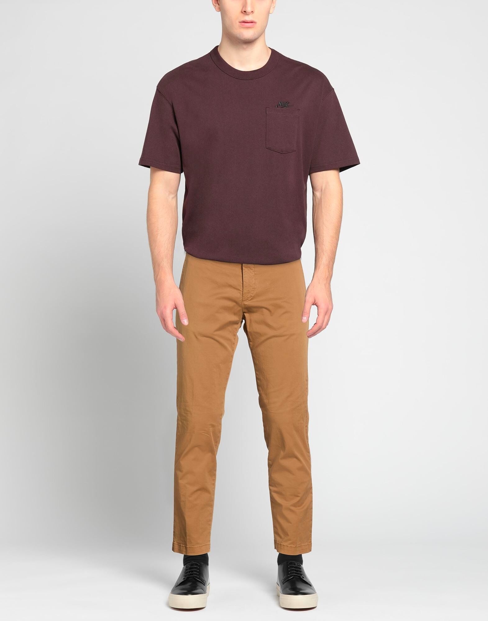 Брюки чинос, габардин, эластичная ткань, однотонные, без аппликаций, средняя посадка, шлевки для ремня, зауженные штанины, облегающий крой, застежка на молнию, застежка на пуговицы, прорезные карманы, карманы на молнии, машинная стирка или химчистка, не отбеливать, не сушить в сушильной машине, этот бренд маломерит