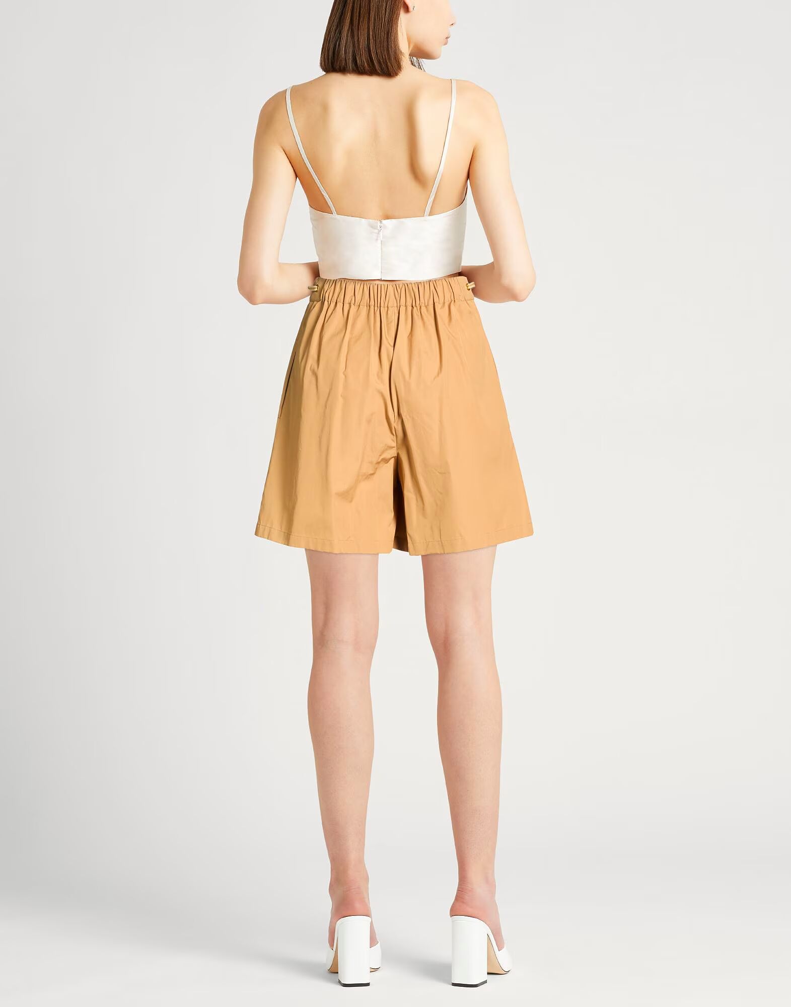 Шорты, тканые, однотонные, без аппликаций, с высокой талией, эластичным поясом, прорезными карманами, машинная стирка или химчистка, не отбеливать, не сушить в сушильной машине