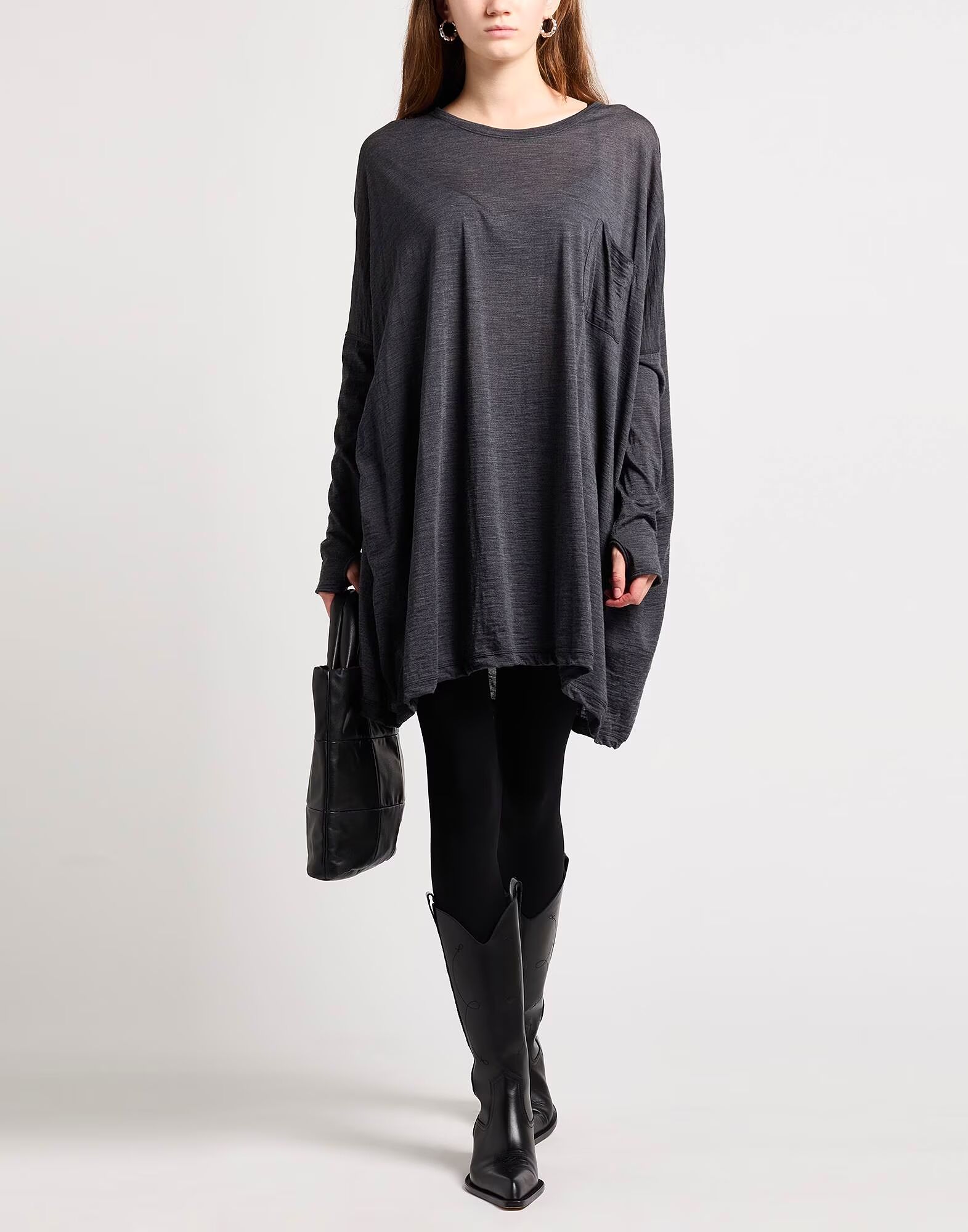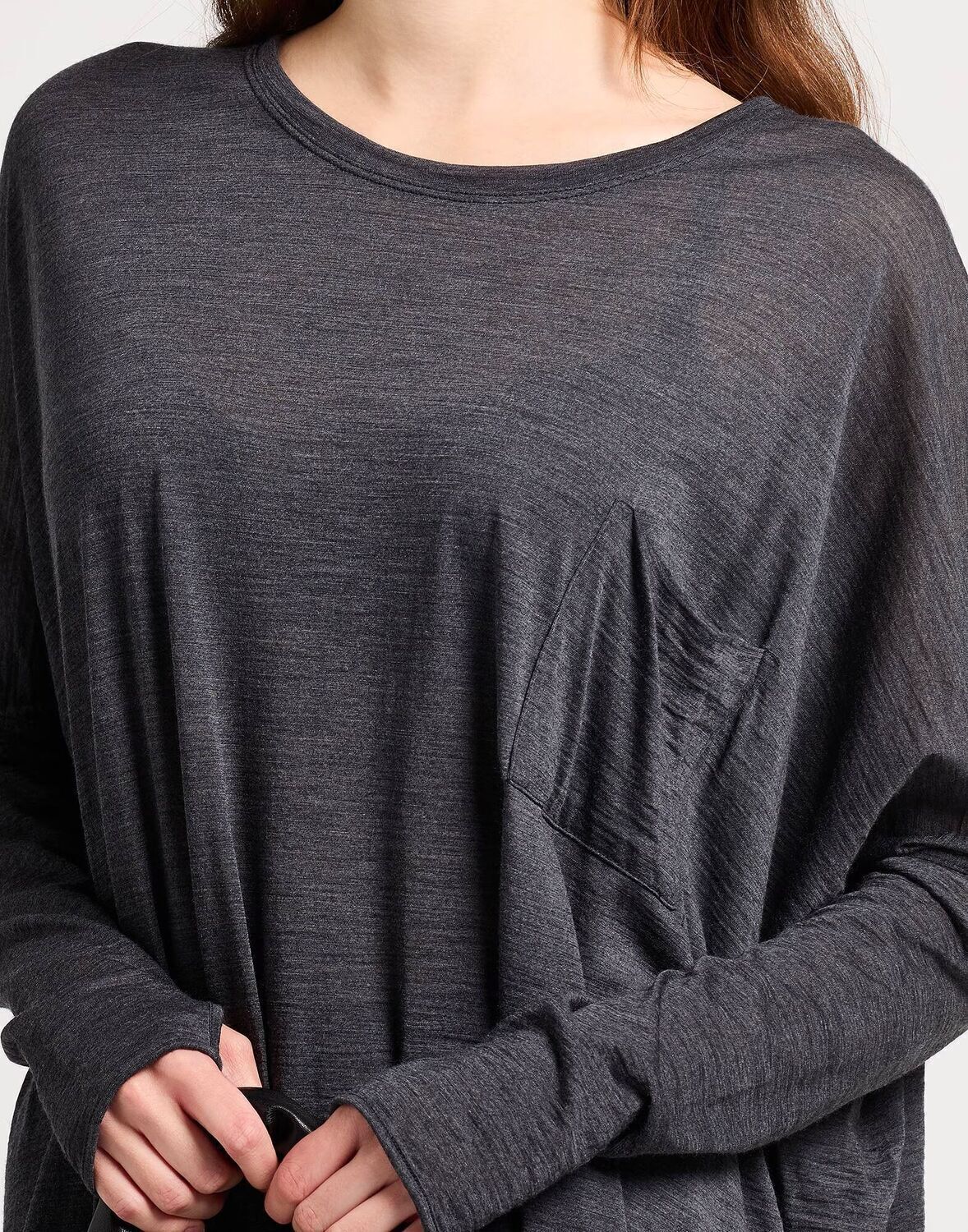Футболка оверсайз, трикотажная, однотонная, без аппликаций, круглый вырез, длинные рукава, один нагрудный карман, ручная стирка или химчистка, не отбеливать, не сушить в сушильной машине