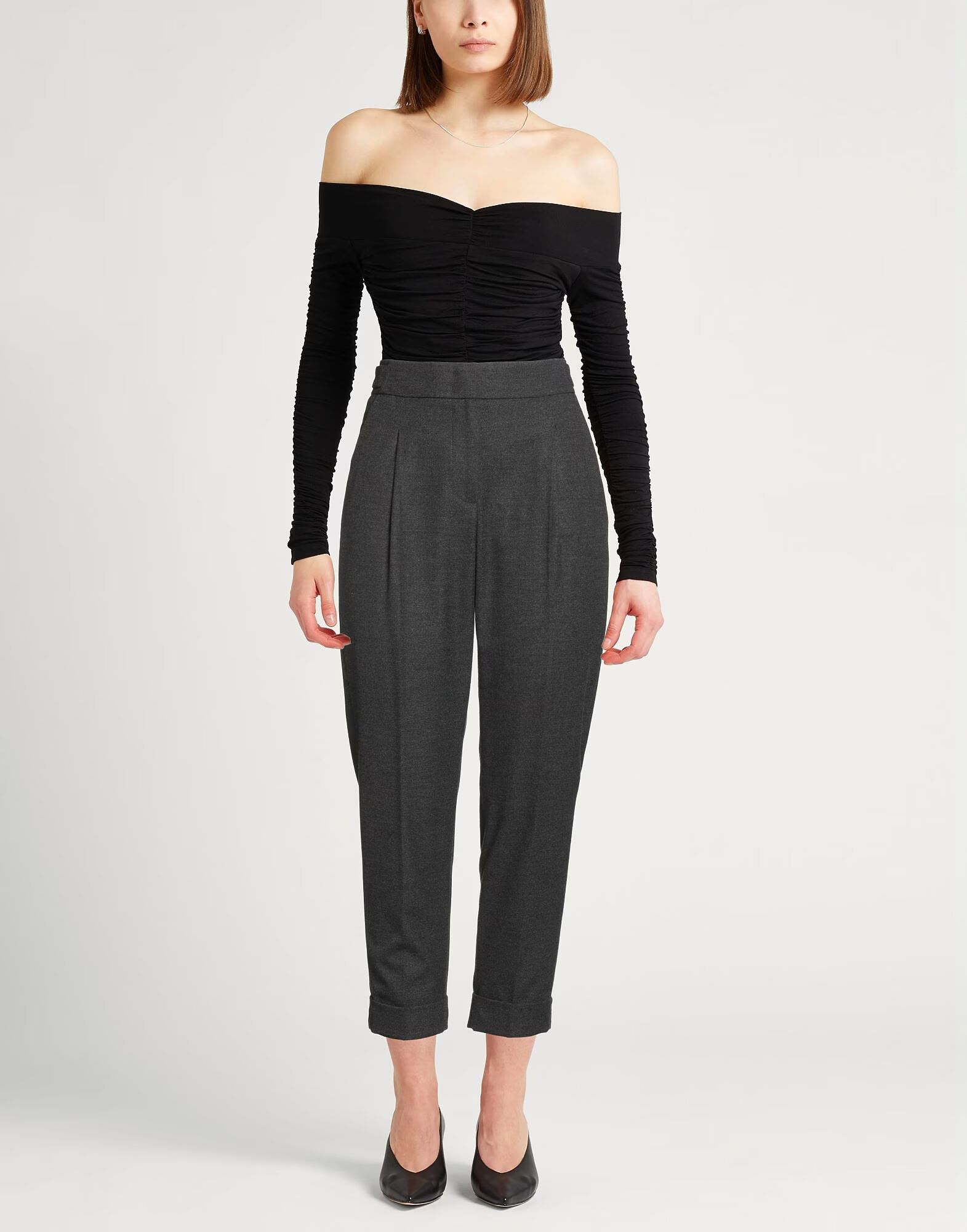 Зауженные брюки, фланель, эластичная ткань, однотонный цвет, вытачки, высокая талия, стандартный крой, застежка на крючки, застежка на молнию, подвернутый низ, прорезные карманы, машинная стирка или химчистка, не отбеливать, не сушить в сушильной машине Деловой стиль сочетается с элегантностью в этом шикарном офисном наряде, который будет вселять уверенность каждый день