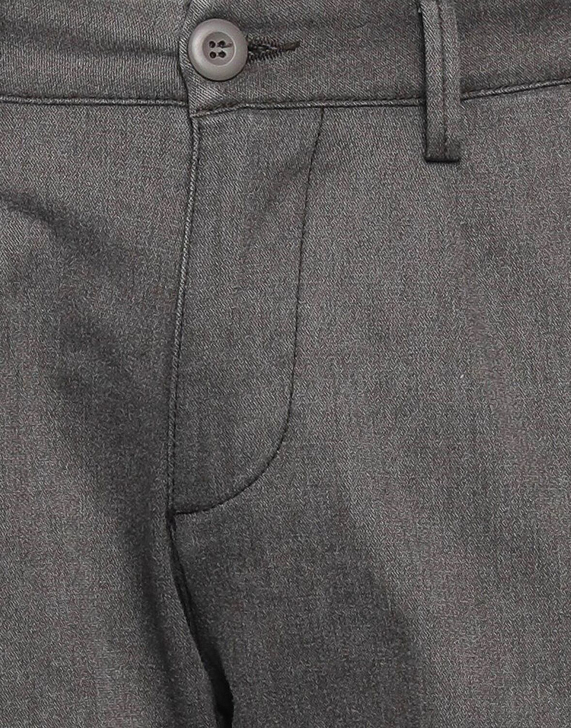 Простое переплетение, стандартный крой, застежка на пуговицы, однотонная ткань, зауженные штанины, вытачки