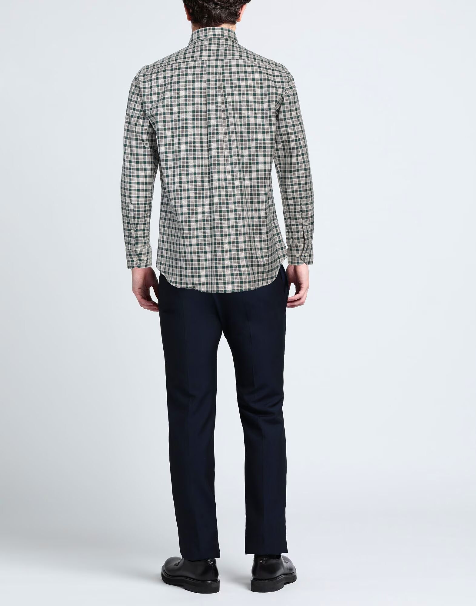 Рубашка стандартного кроя, тканая, в клетку, с логотипом бренда, воротник на пуговицах, длинные рукава, застежка на пуговицы, один нагрудный карман, машинная стирка или химчистка, не сушить в сушильной машине