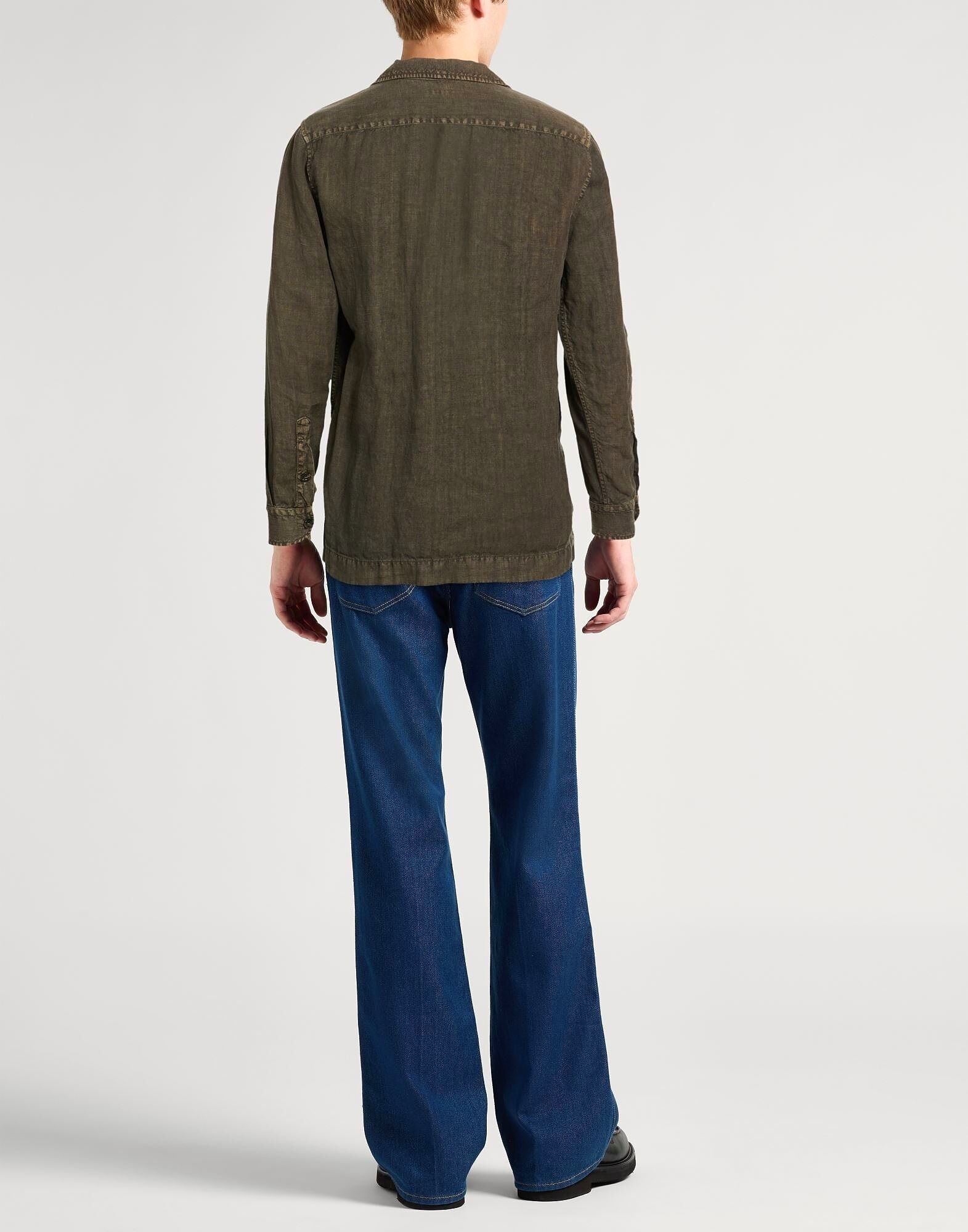 Рубашка-куртка, лён, однотонная, без аппликаций, отложной воротник, длинные рукава, манжеты на пуговицах, застежка на пуговицы, накладные карманы, один нагрудный карман, боковой разрез по низу, машинная стирка или химчистка, не отбеливать, не сушить в сушильной машине