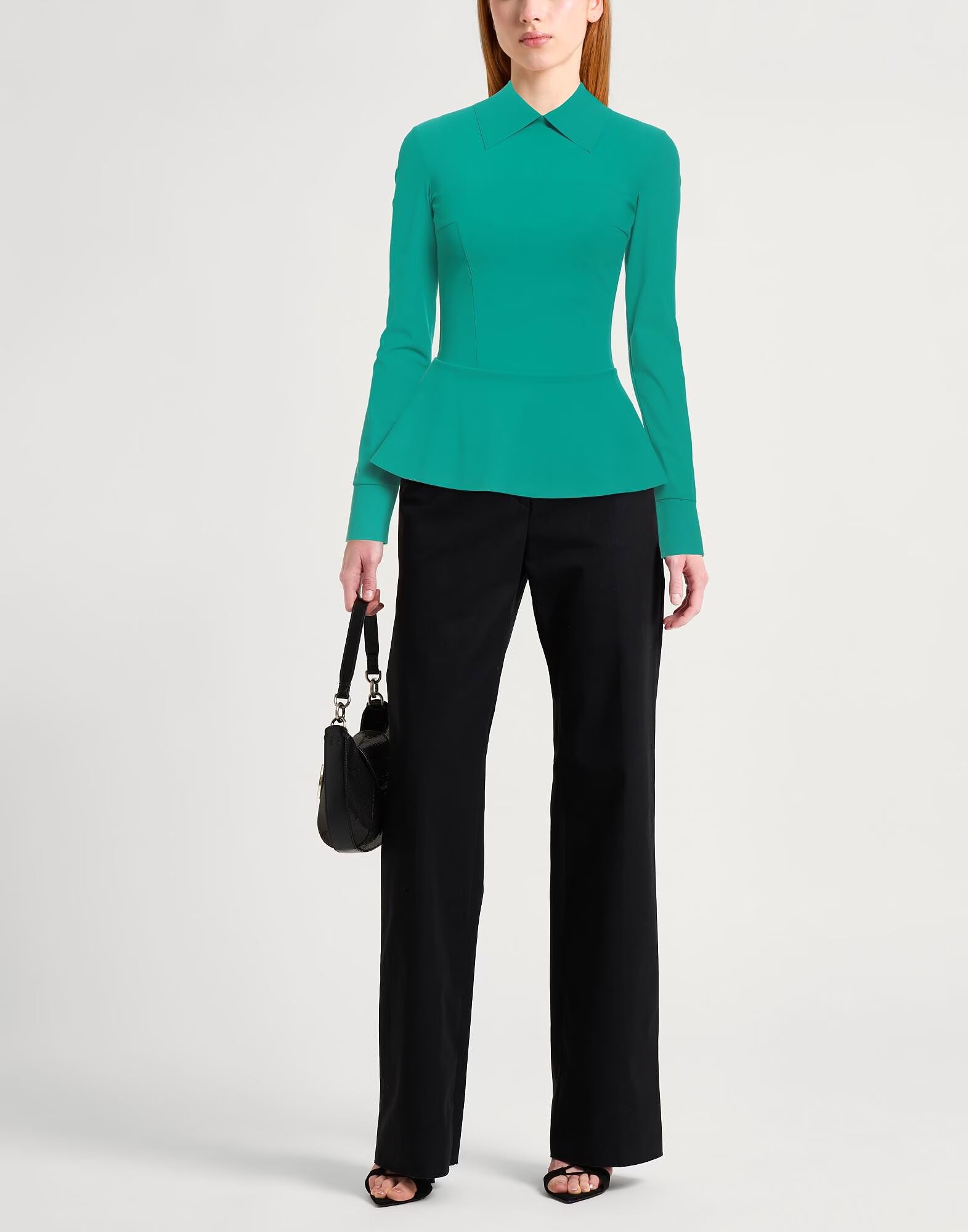 Топ с баской, синтетический трикотаж, однотонный, без аппликаций, классический воротник, длинные рукава, застежка-молния, эластичный, машинная стирка или химчистка, не отбеливать, не сушить в сушильной машине