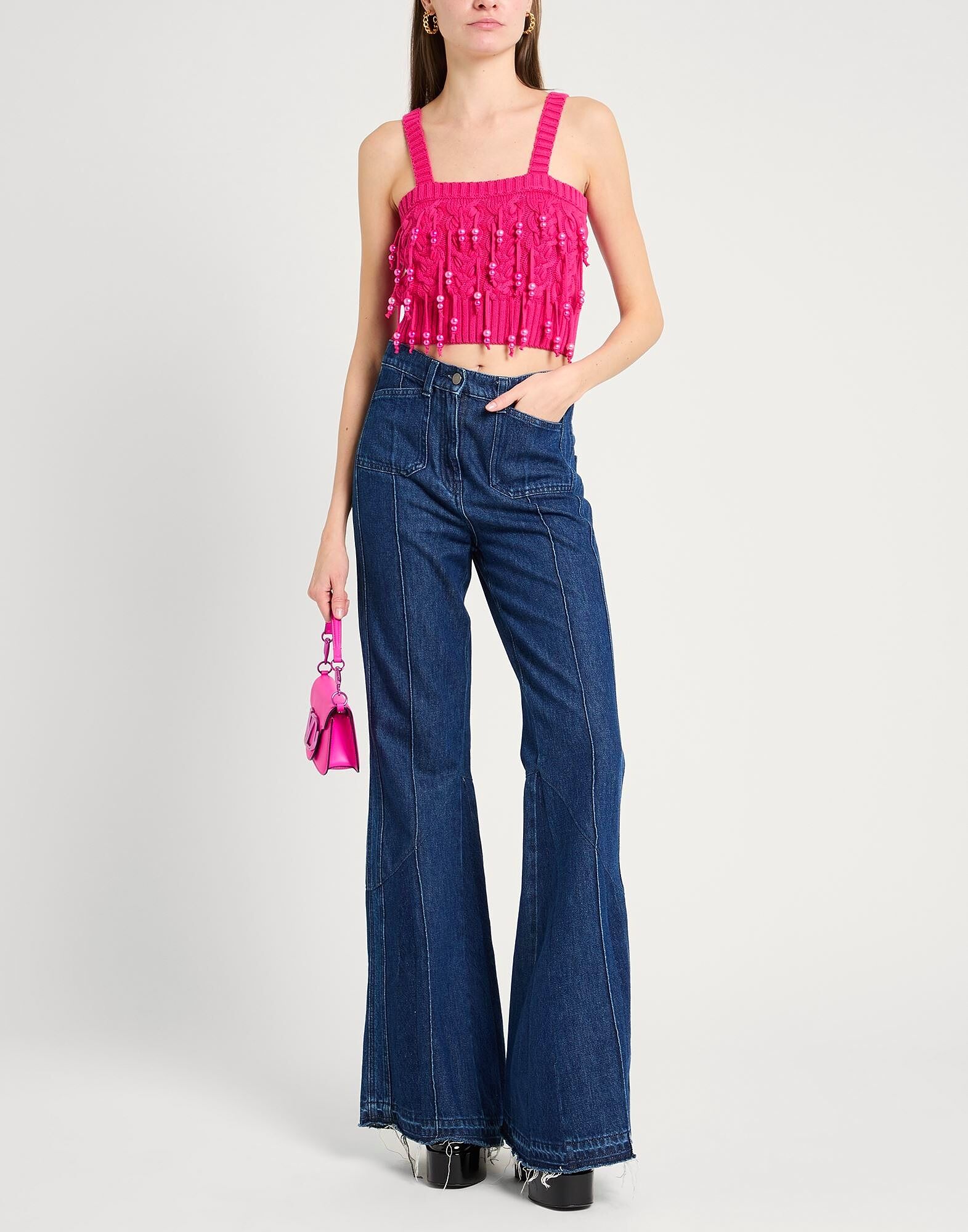 Укороченный топ, крупная вязка, средней плотности, однотонный, с аппликациями, бусинами, квадратный вырез, без рукавов, ручная стирка, не отбеливать, не сушить в сушилке, не гладить