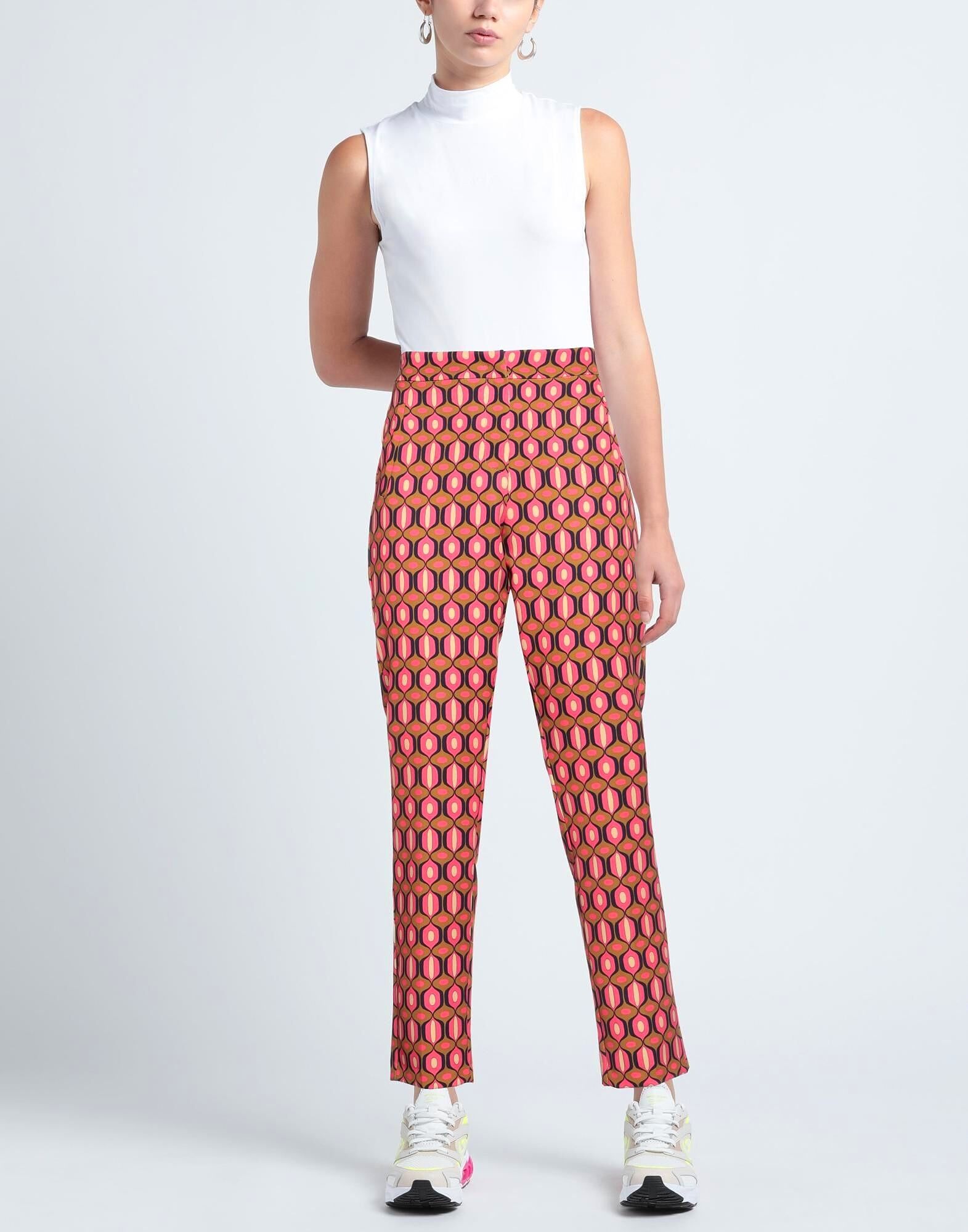 Креп, логотип бренда, многоцветный узор, высокая талия, зауженные штанины, стандартный крой, застежка на молнию, застежка на пуговицы, без карманов, эластичные, брюки