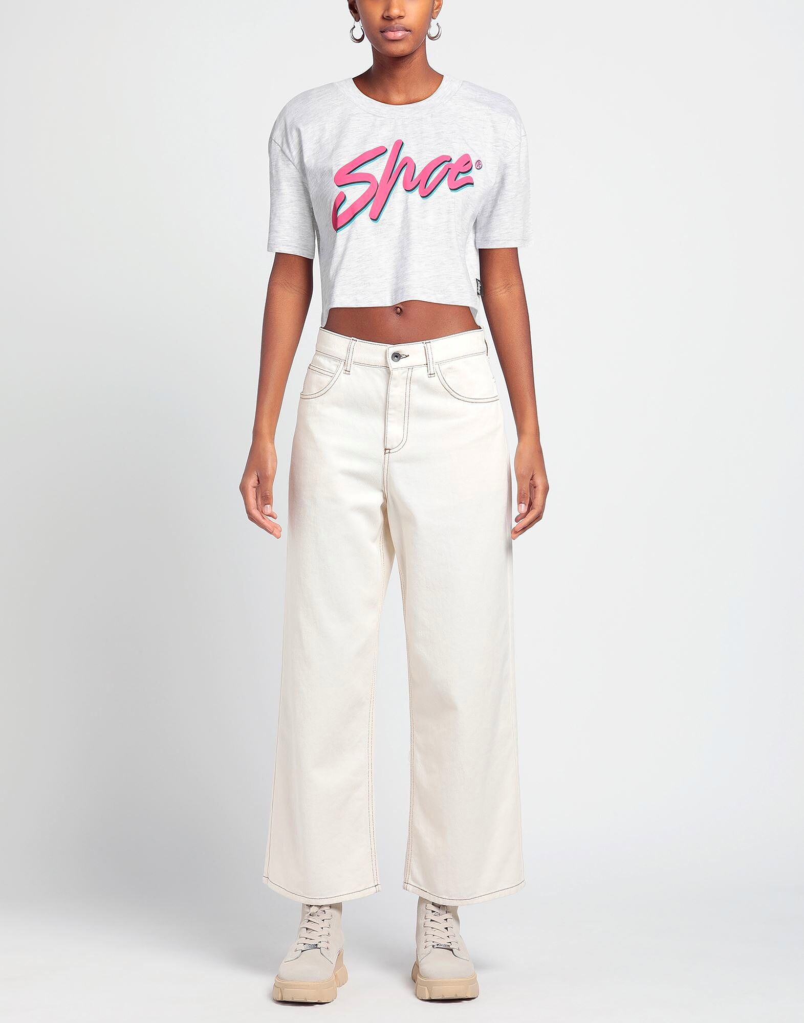 Укороченная футболка, трикотажная, однотонная с принтом, логотип бренда, круглый вырез, короткие рукава
