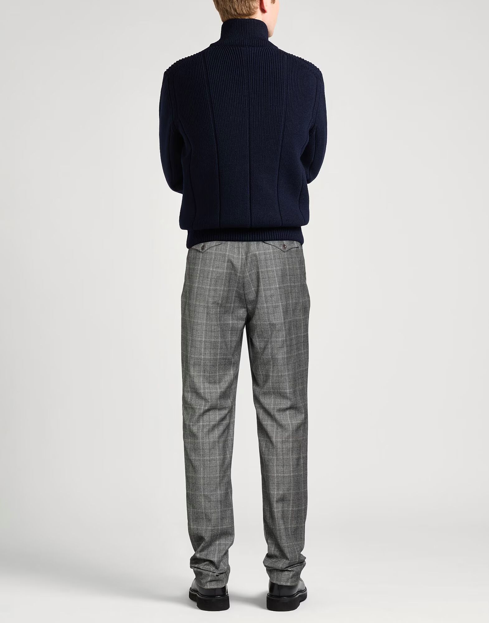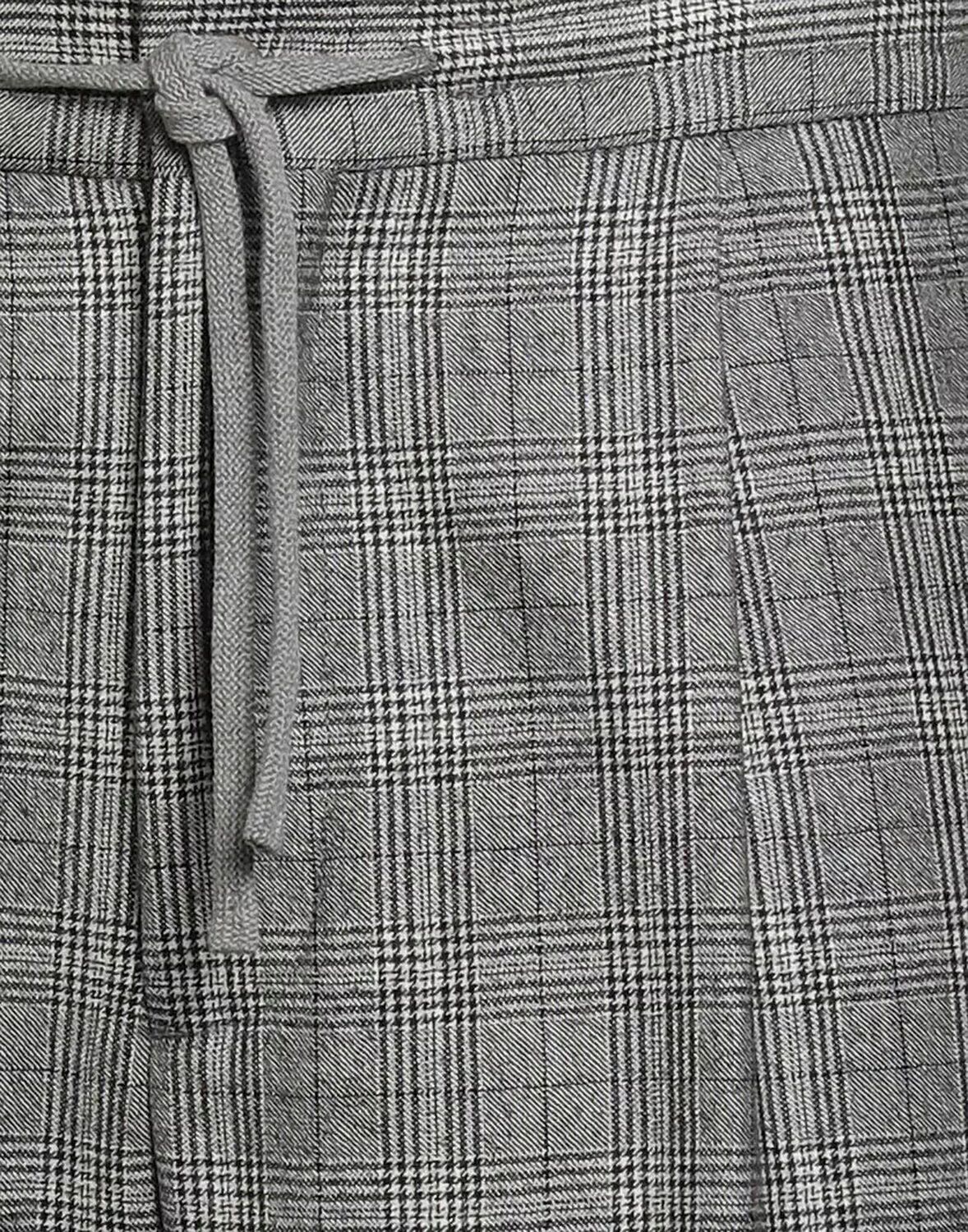 Классические брюки, холодная шерсть, клетка «глен плейд», без аппликаций, высокая талия, пояс на шнуровке, зауженные штанины, стандартный крой, застежка на молнию, 1 пуговица, прорезные карманы, накладные карманы, химчистка, не отбеливать, не сушить в сушильной машине