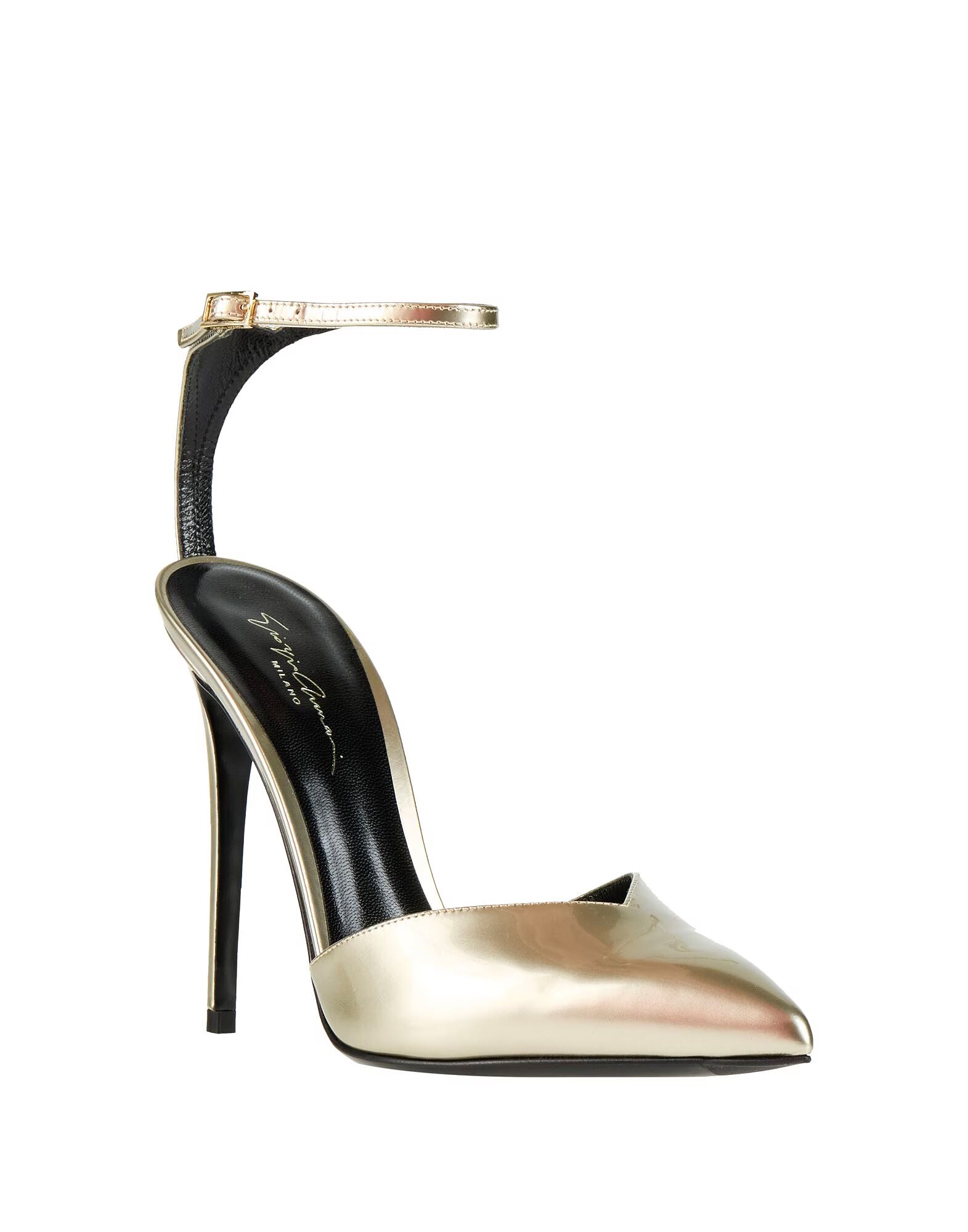 Туфли-лодочки, лакированная кожа, металлизированный цвет, однотонные, без аппликаций, ремешок на щиколотке с пряжкой, заостренный носок, шпилька, кожаная подкладка, кожаная подошва, содержат нетекстильные части животного происхождения