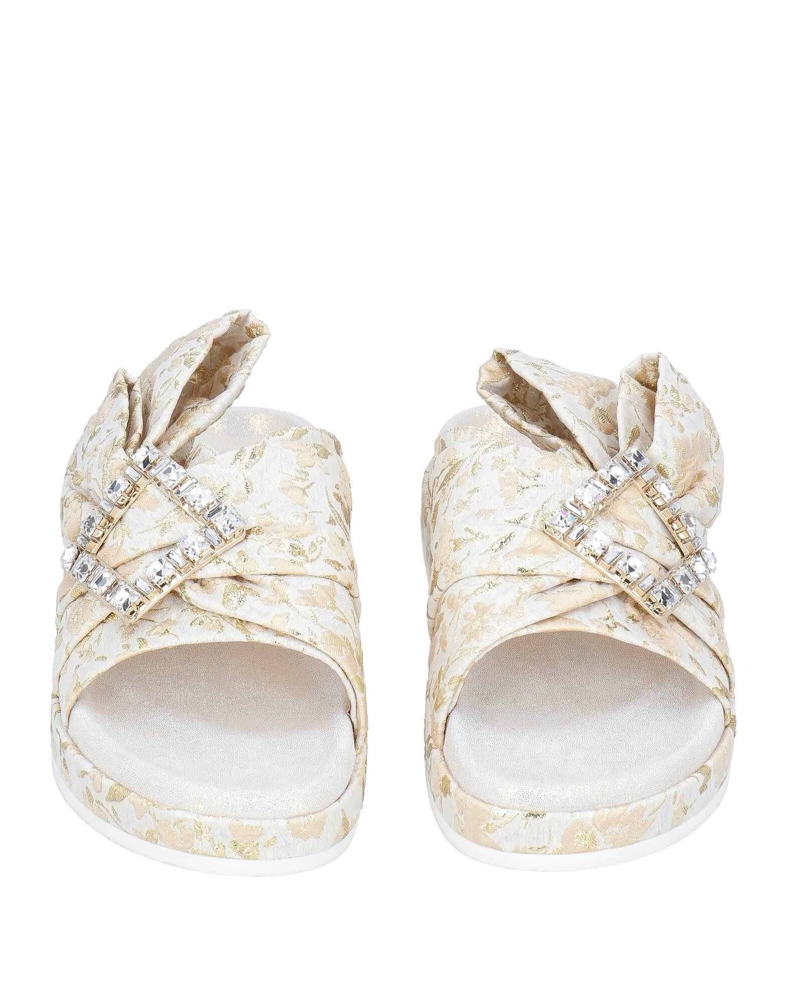 Парча, люрекс, бант, цветочный принт, на подкладке, круглый носок, квадратный каблук, резиновая рифленая подошва, сандалии-шлепанцы