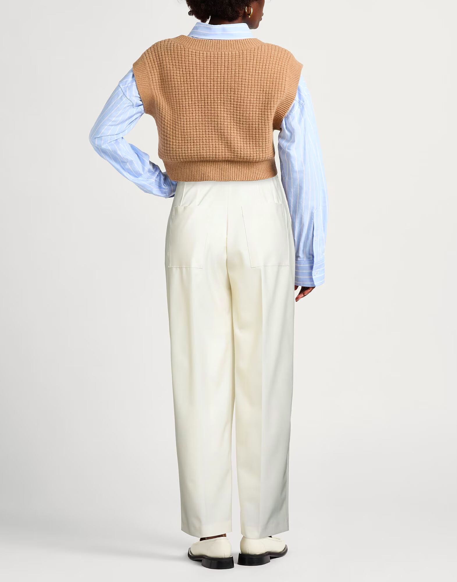 Широкие брюки, прохладная шерсть, однотонный цвет, без аппликаций, высокая талия, шлевки для ремня, свободный крой, без подкладки, застежка-молния, 1 пуговица, множество карманов, накладные карманы, эластичный материал, ручная стирка или химчистка, не отбеливать, не сушить в сушильной машине Деловой стиль сочетается с элегантностью в этом шикарном офисном наряде, который будет вселять уверенность каждый день