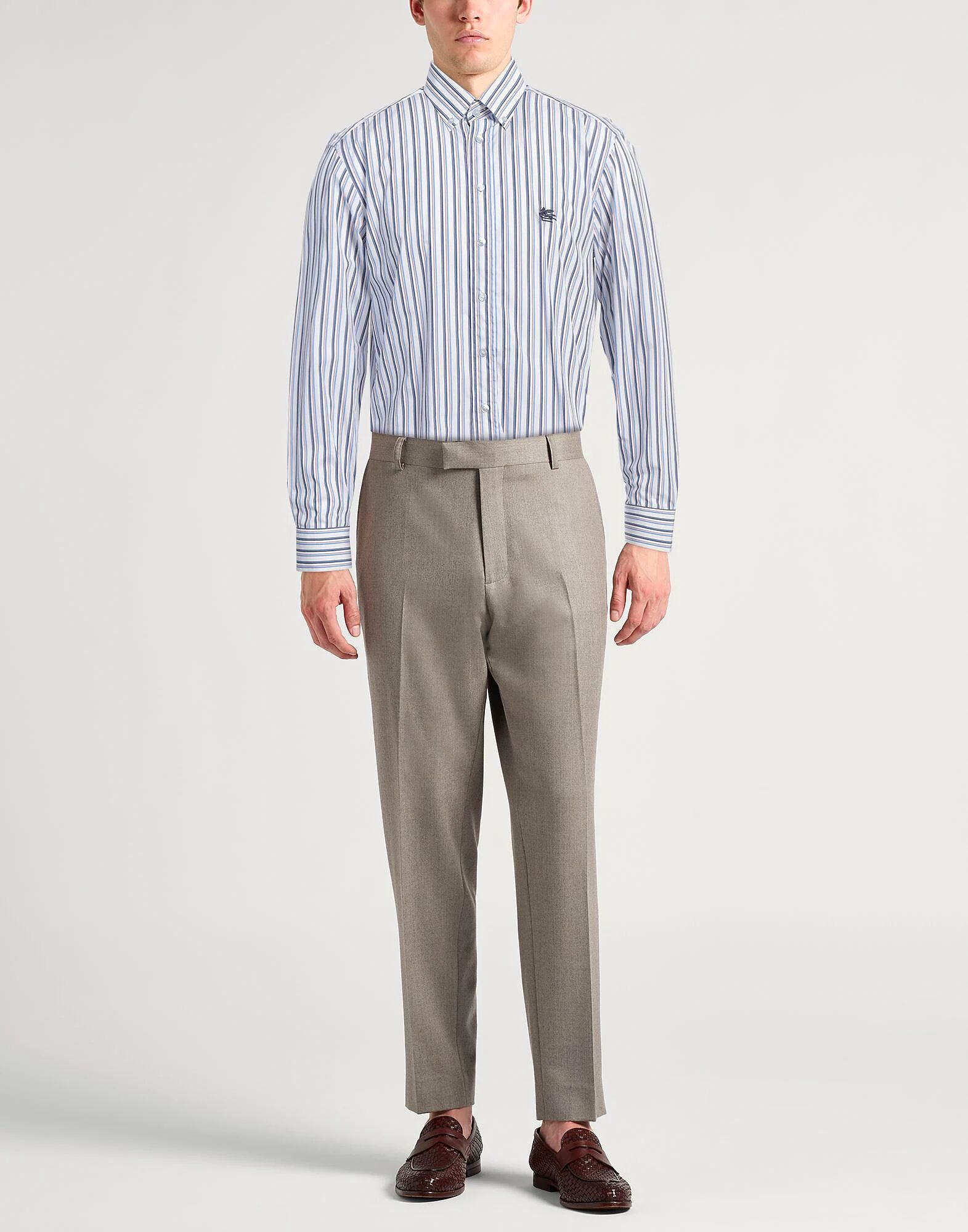 Рубашка приталенного кроя, поплин, в полоску, с вышитым логотипом, воротник на пуговицах, длинные рукава, манжеты на пуговицах, застежка на пуговицах, машинная стирка или химчистка, не отбеливать, не сушить в сушильной машине