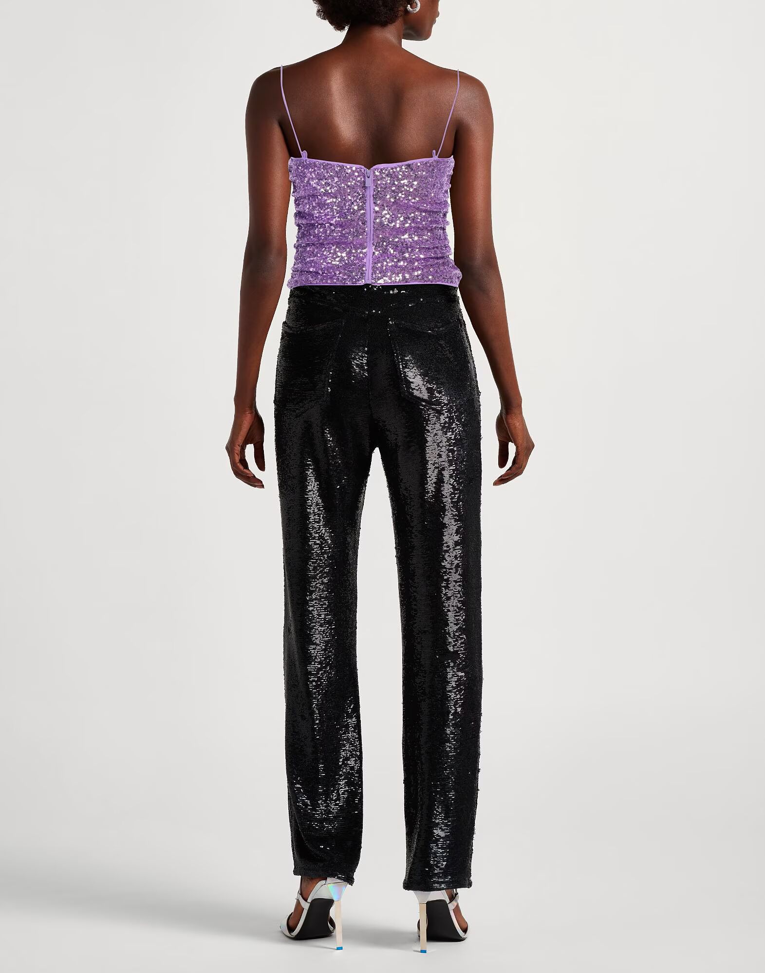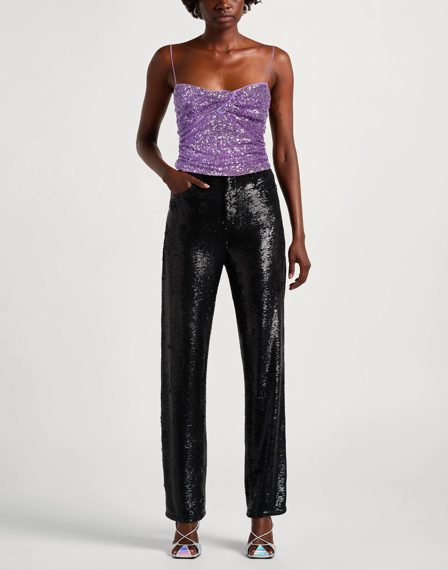 Укороченный топ, тюль, эластичная ткань, однотонный цвет с аппликациями, пайетками, глубокий вырез, без рукавов, застежка-молния, химчистка, не отбеливать, не сушить в сушильной машине Добавьте гламура с помощью шикарных дизайнерских нарядов для вечеринки или веселого вечера