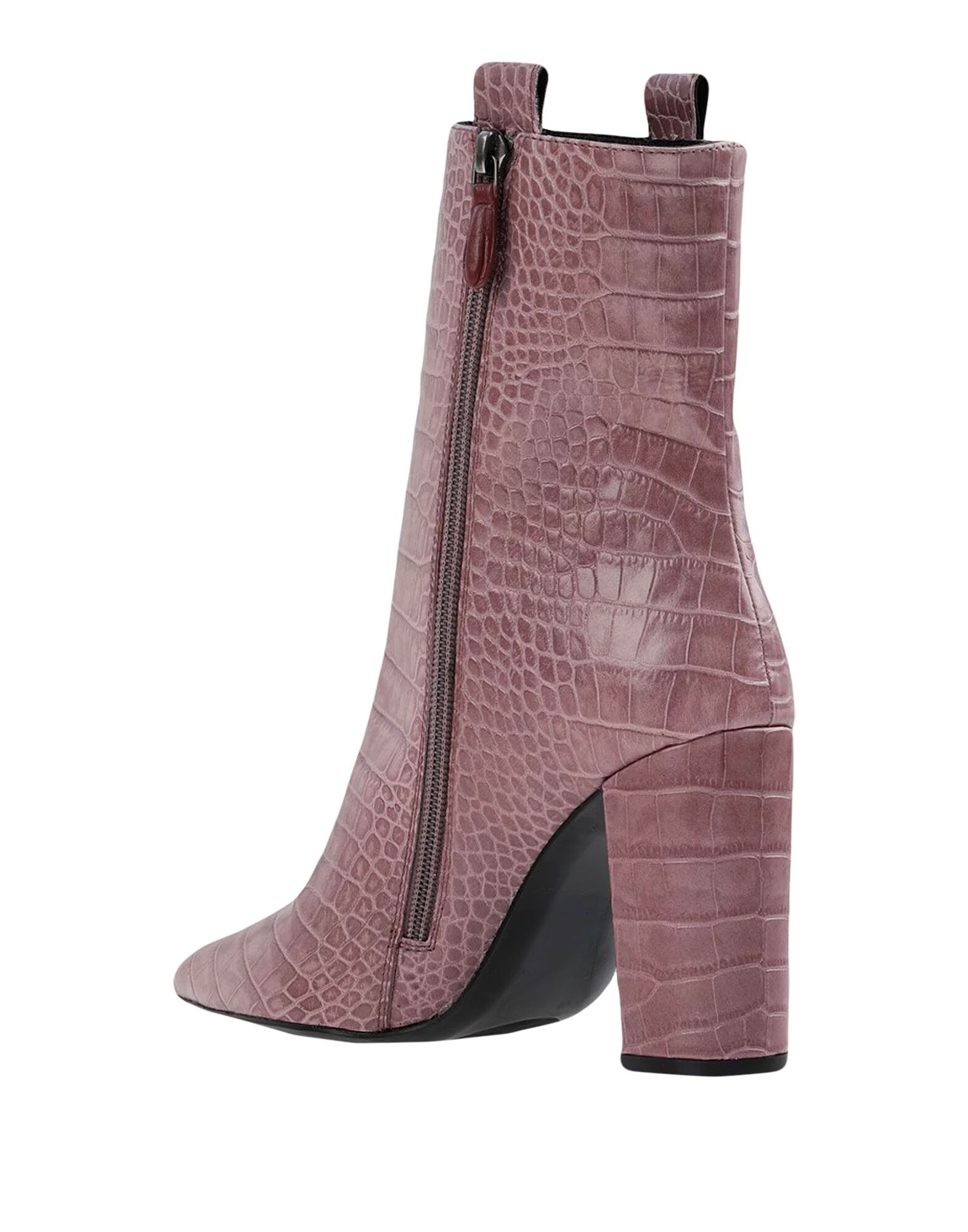 Принт под крокодиловую кожу, без аппликаций, однотонный базовый цвет, молния, узкий носок, квадратный каблук, обтянутый каблук, кожаная подкладка, резиновая подошва, содержит нетекстильные части животного происхождения