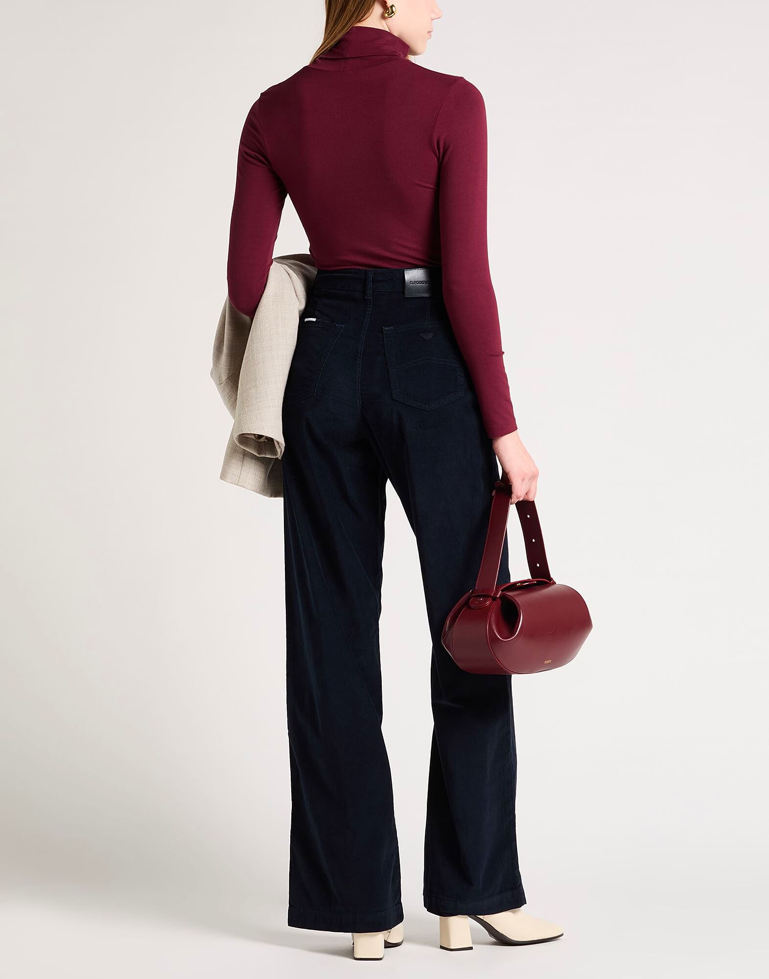 Широкие брюки, вельвет, эластичная ткань, однотонные, логотип бренда, высокая талия, шлевки для ремня, стандартный крой, застежка на молнию, застежка на пуговицы, карманы, машинная стирка, не отбеливать, не сушить в сушильной машине