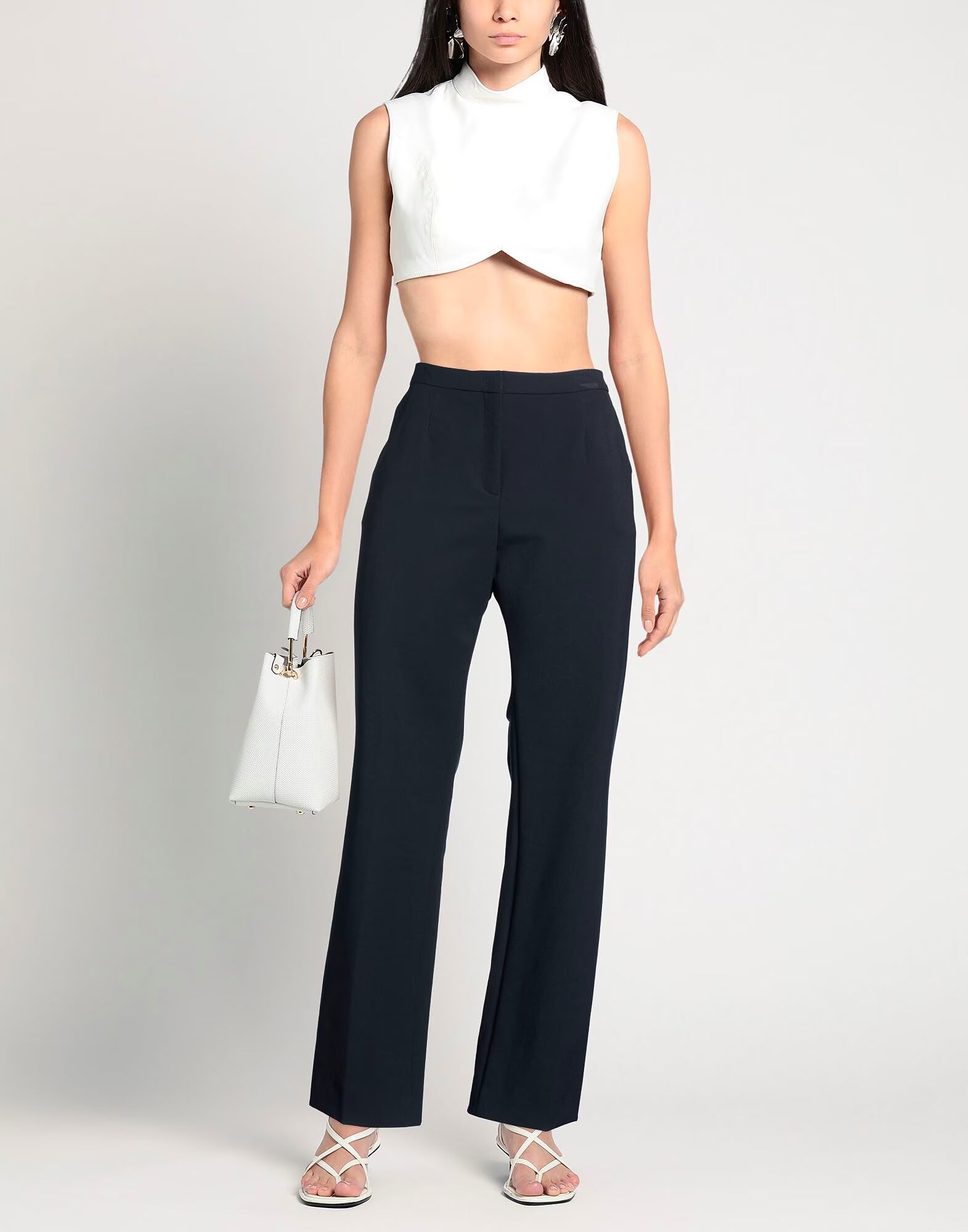 Брюки прямого кроя, креп, эластичная ткань, однотонные, без аппликаций, высокая талия, стандартный крой, застежка на молнию, застежка на крючок, прорезные карманы, химчистка, не отбеливать, не сушить в сушильной машине